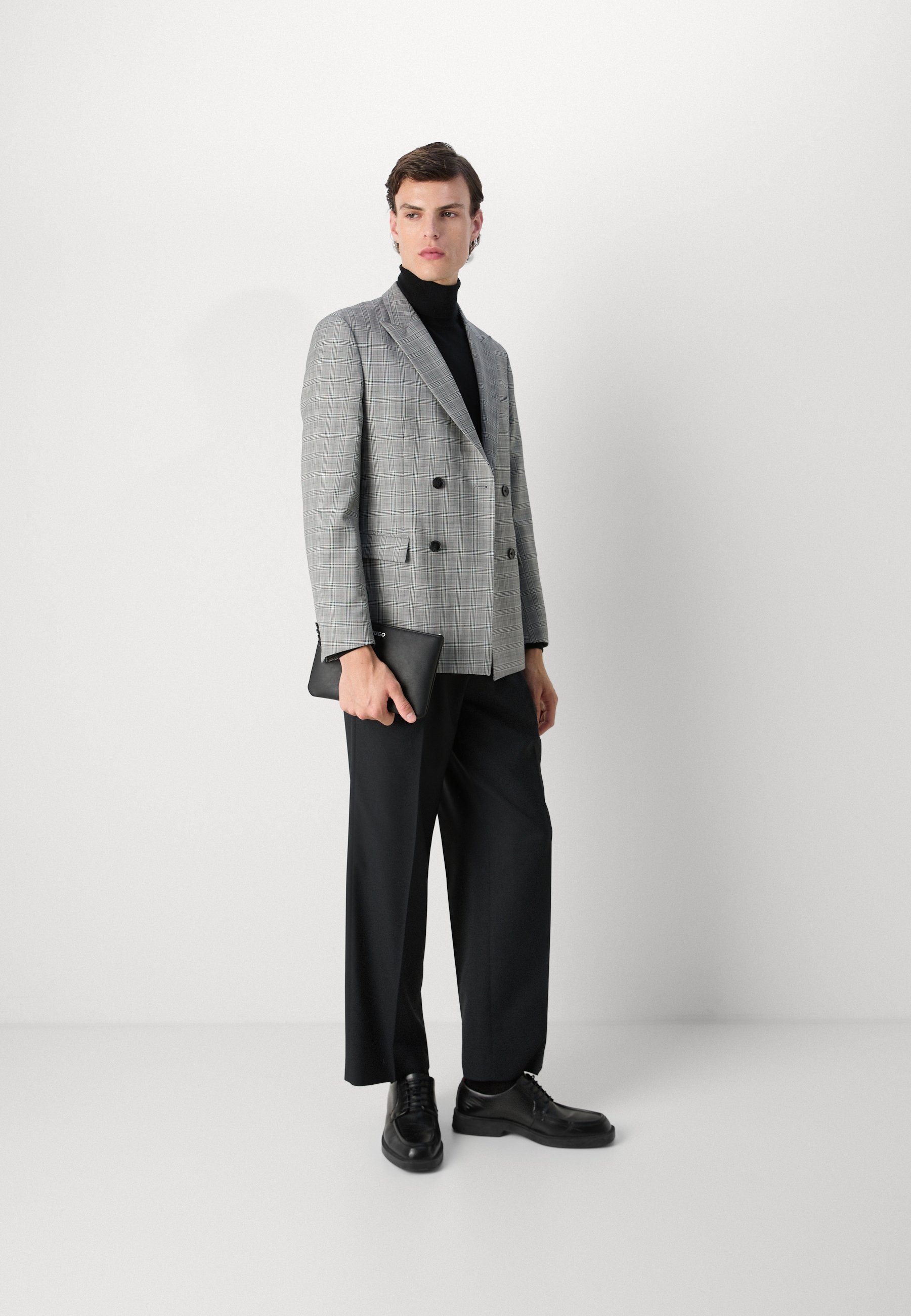 giacca nera pantaloni grigi