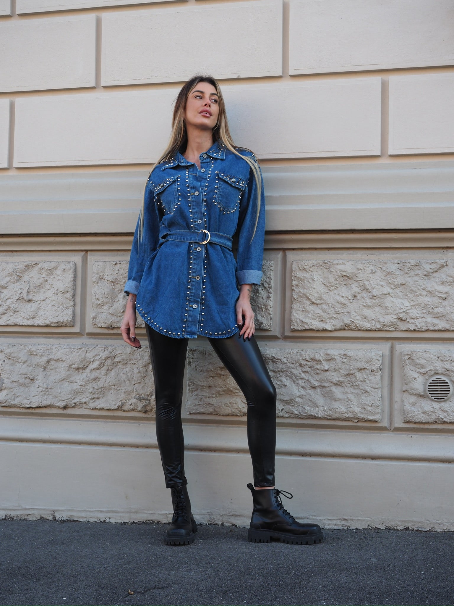leggings ecopelle blu