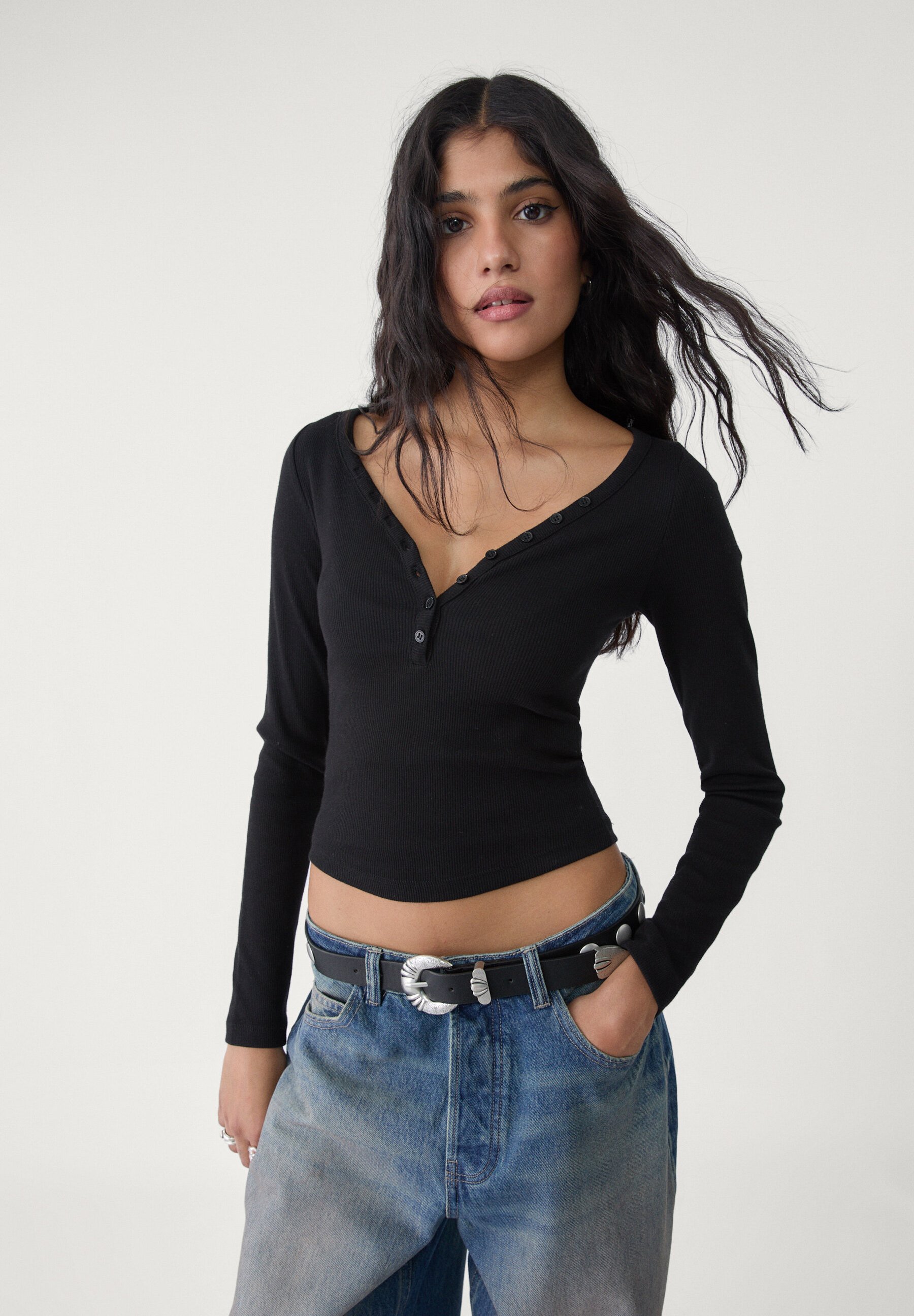maglietta manica lunga con bottoni