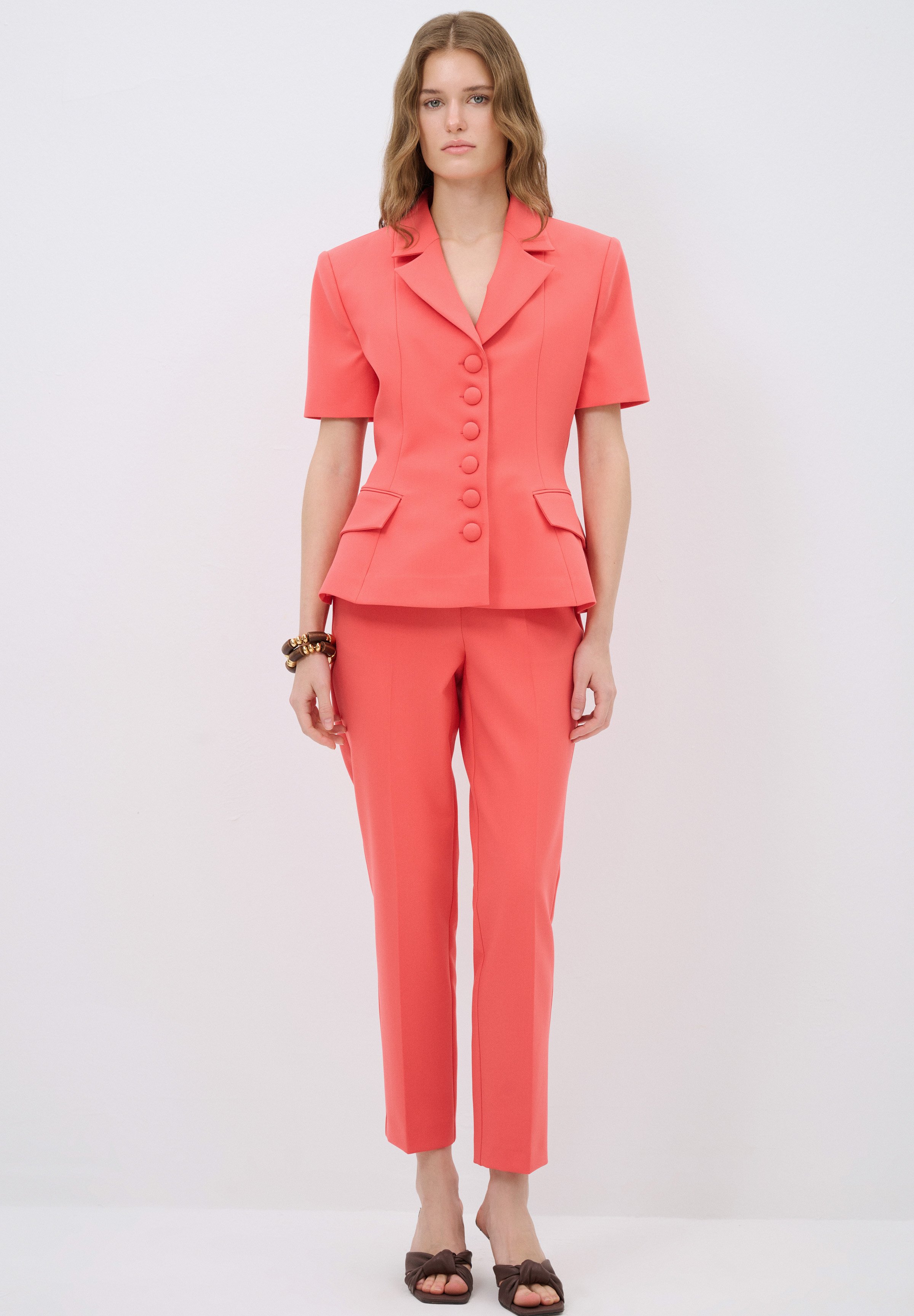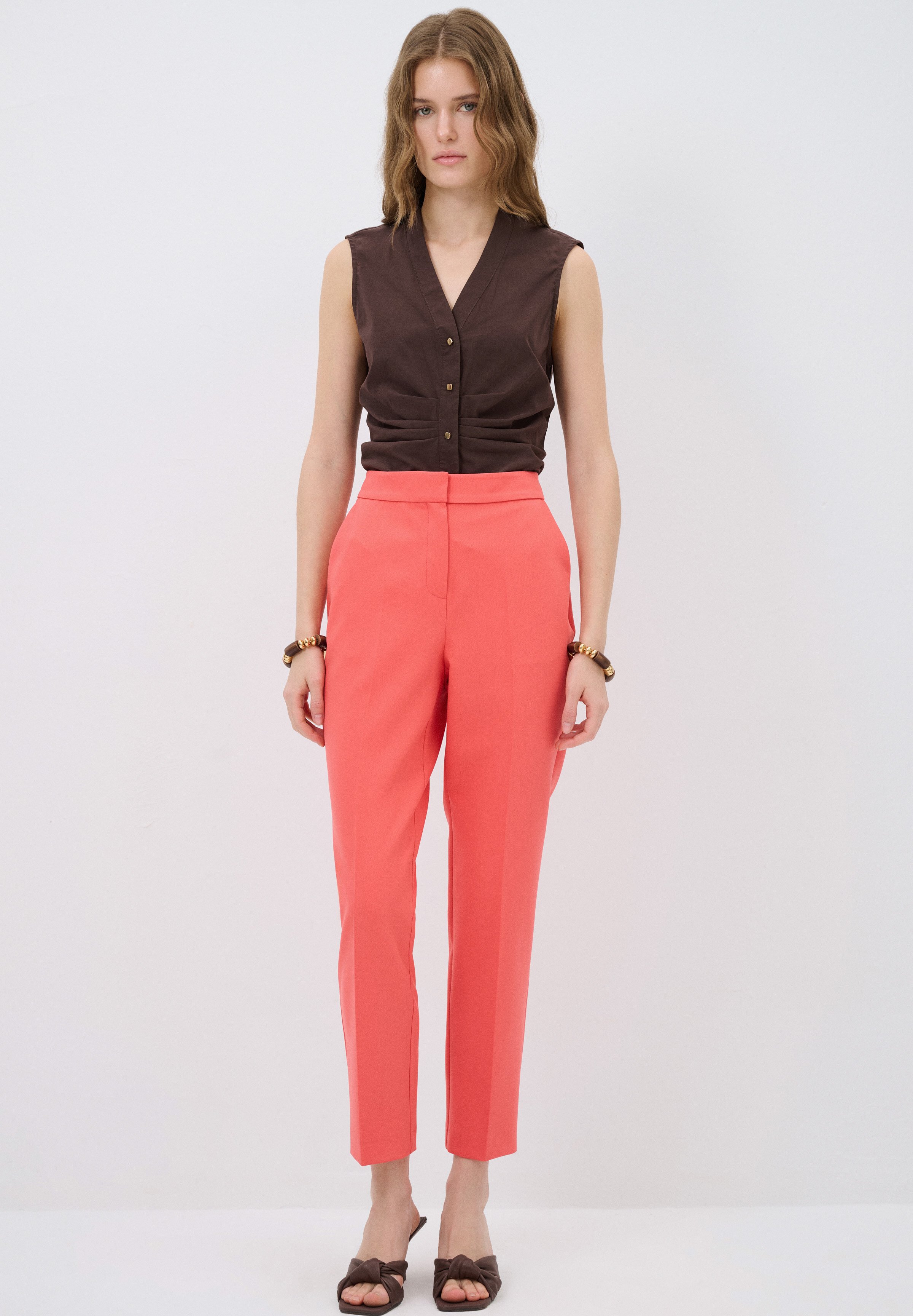 outfit pantaloni corallo