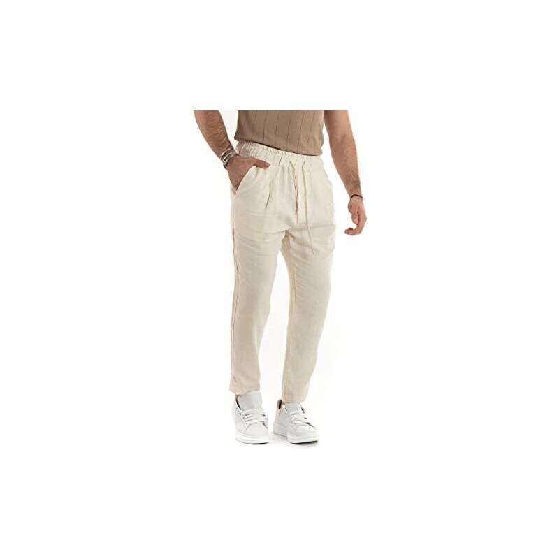 pantalone beige lino