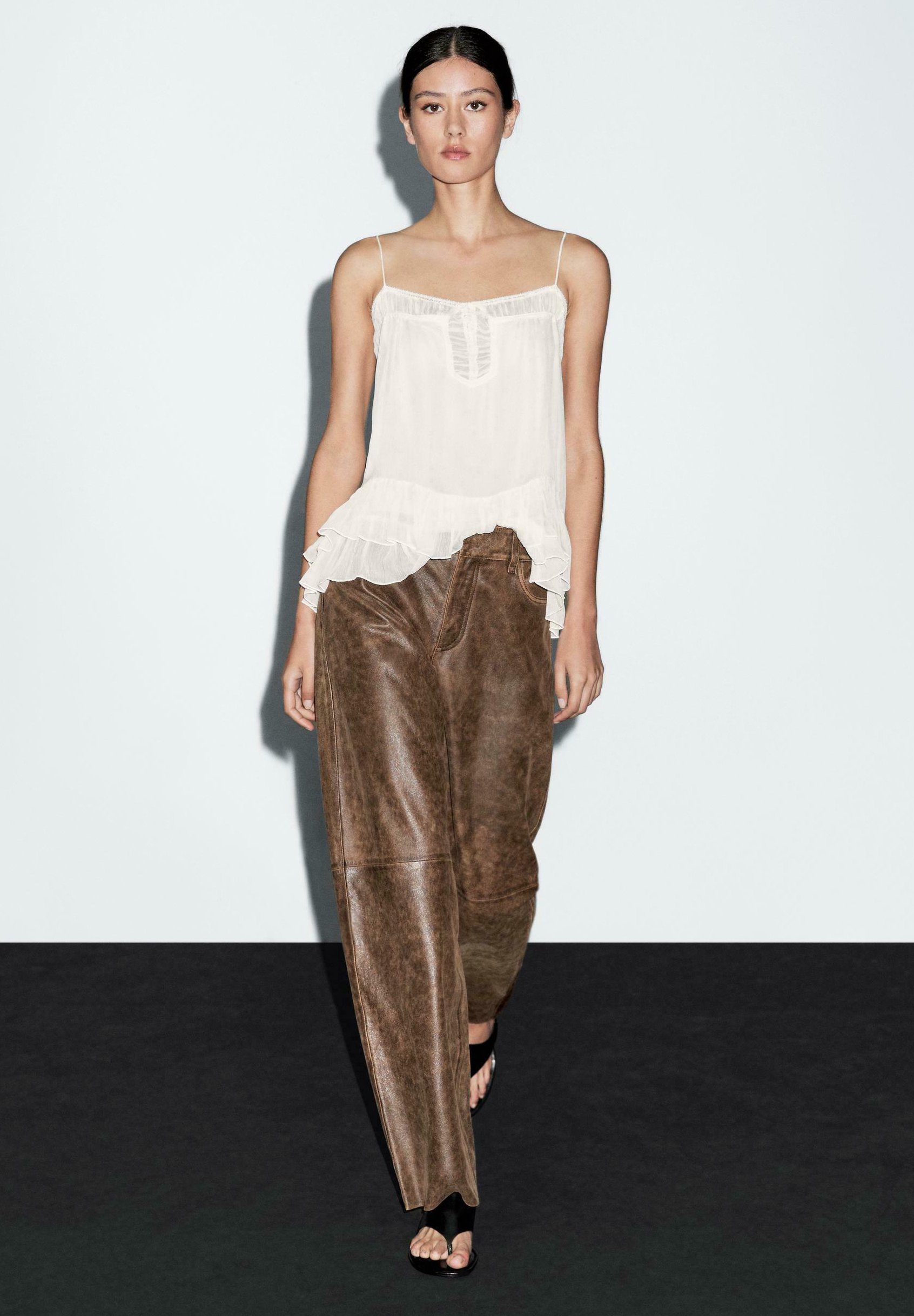 pantalone di pelle arricciato