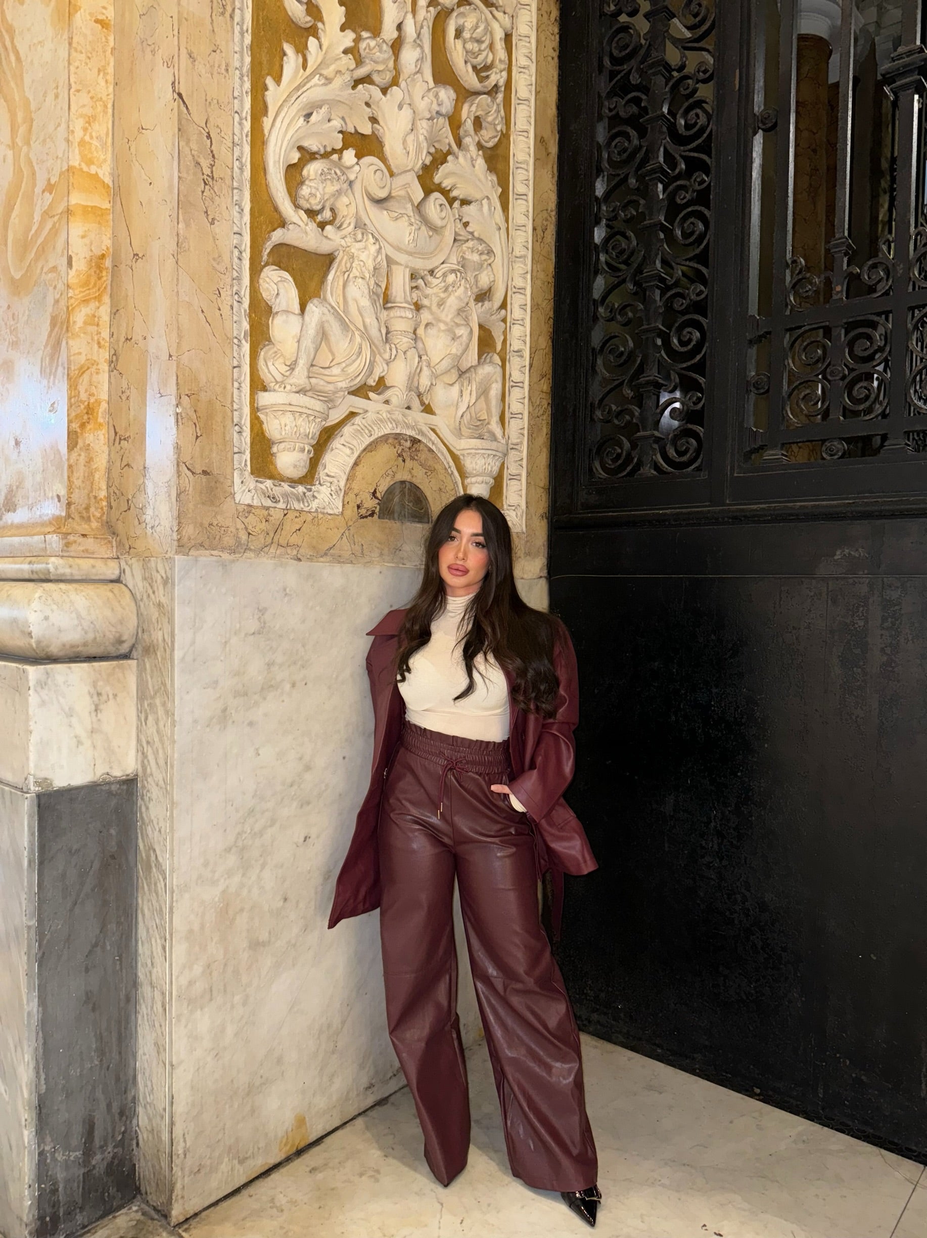 pantalone di pelle bordeaux