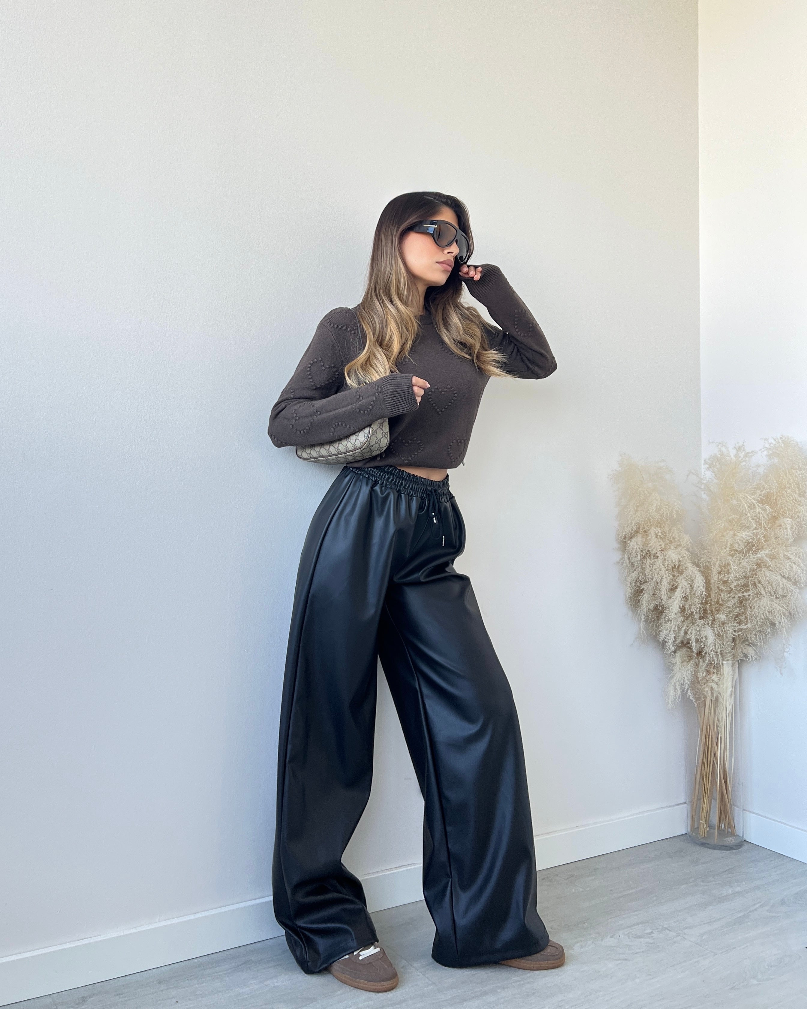 pantalone ecopelle nero