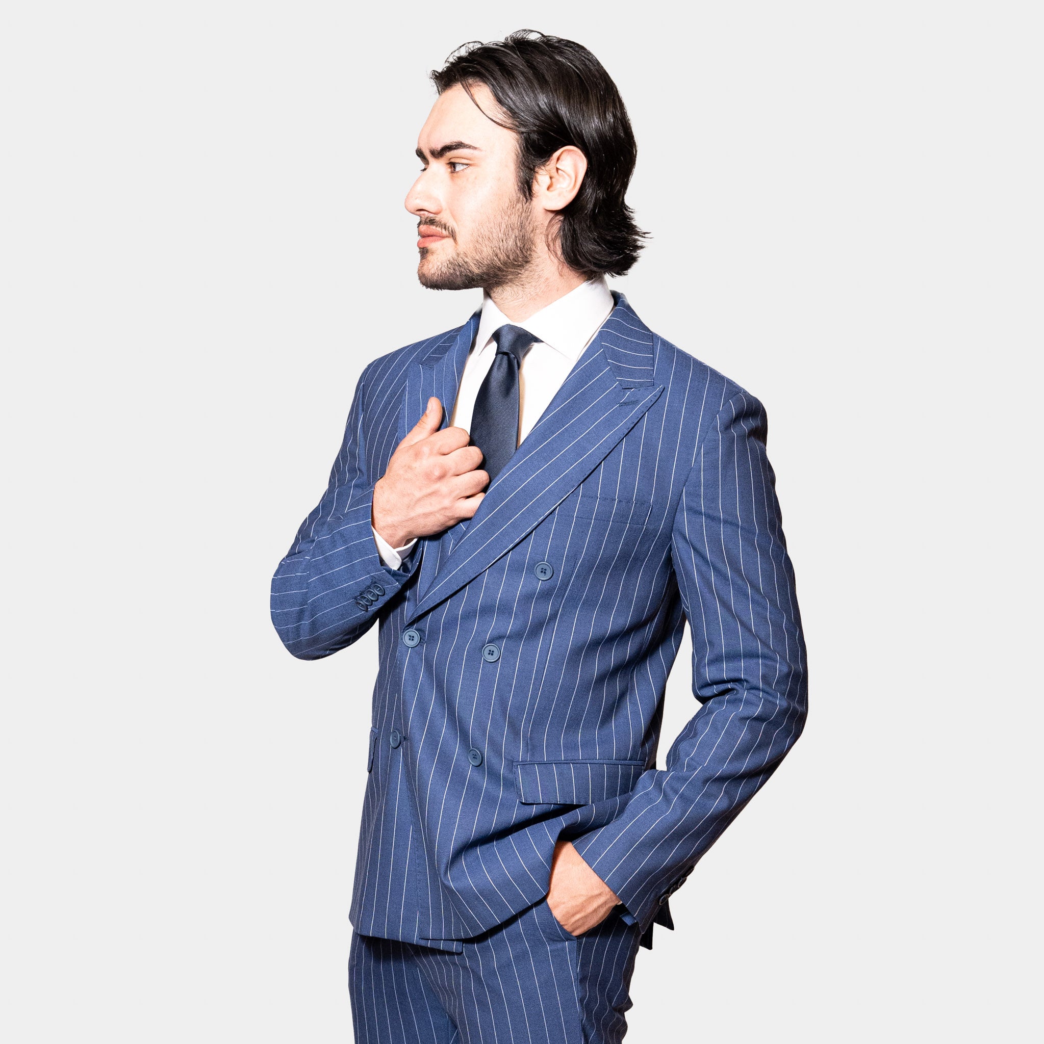 pantalone gessato blu uomo