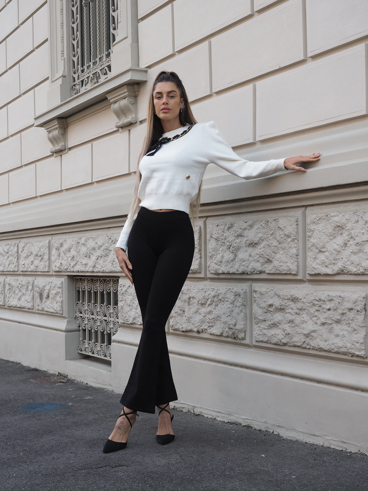 pantalone zampa nero