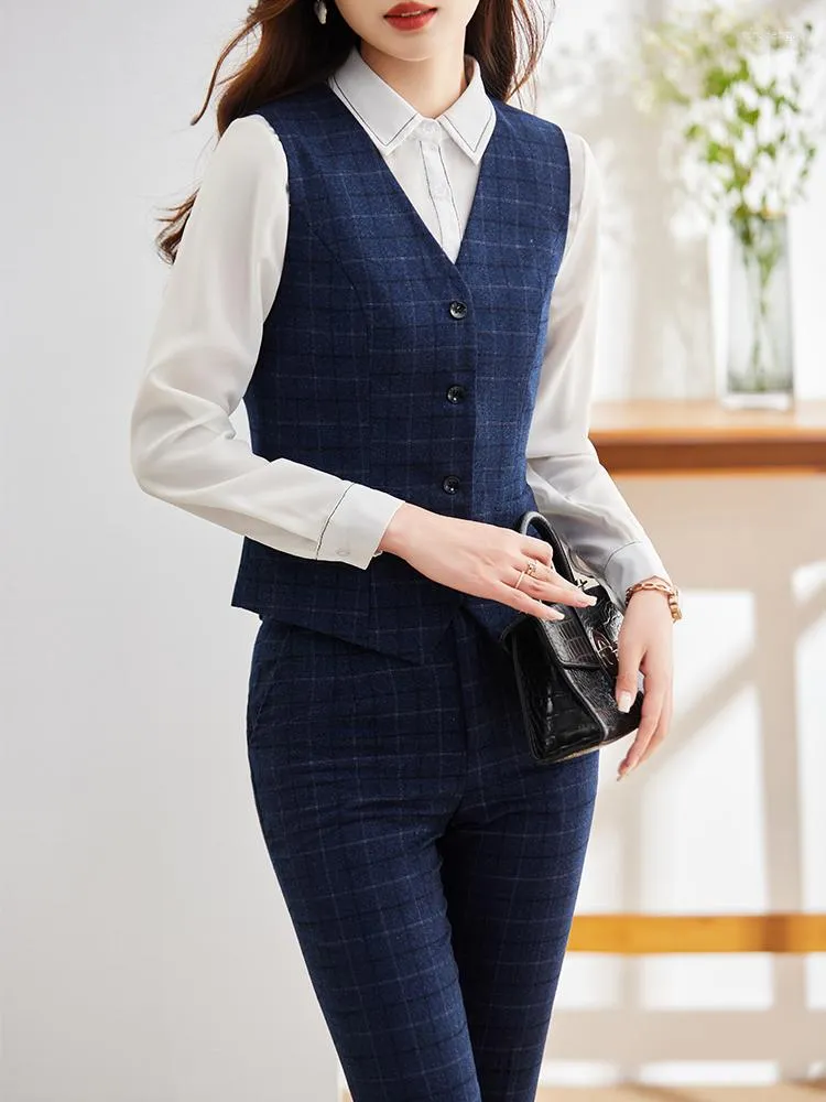 pantaloni a quadri blu donna
