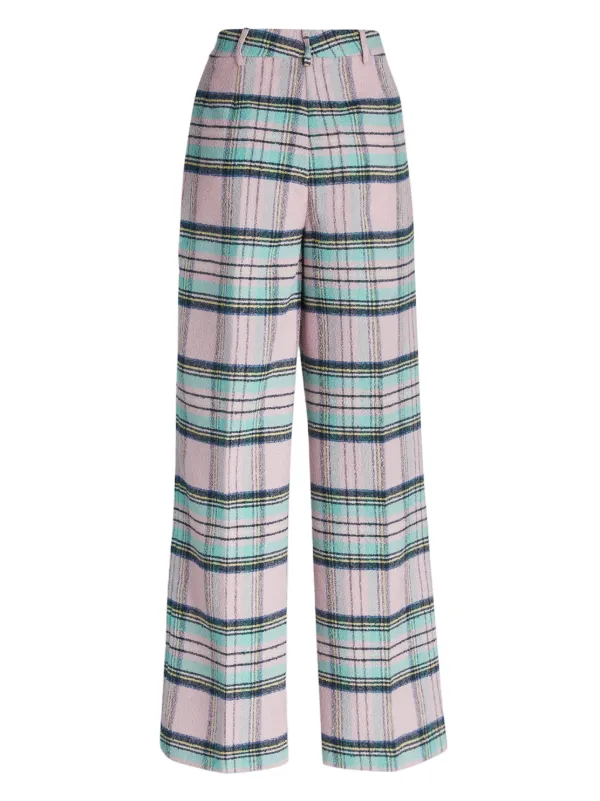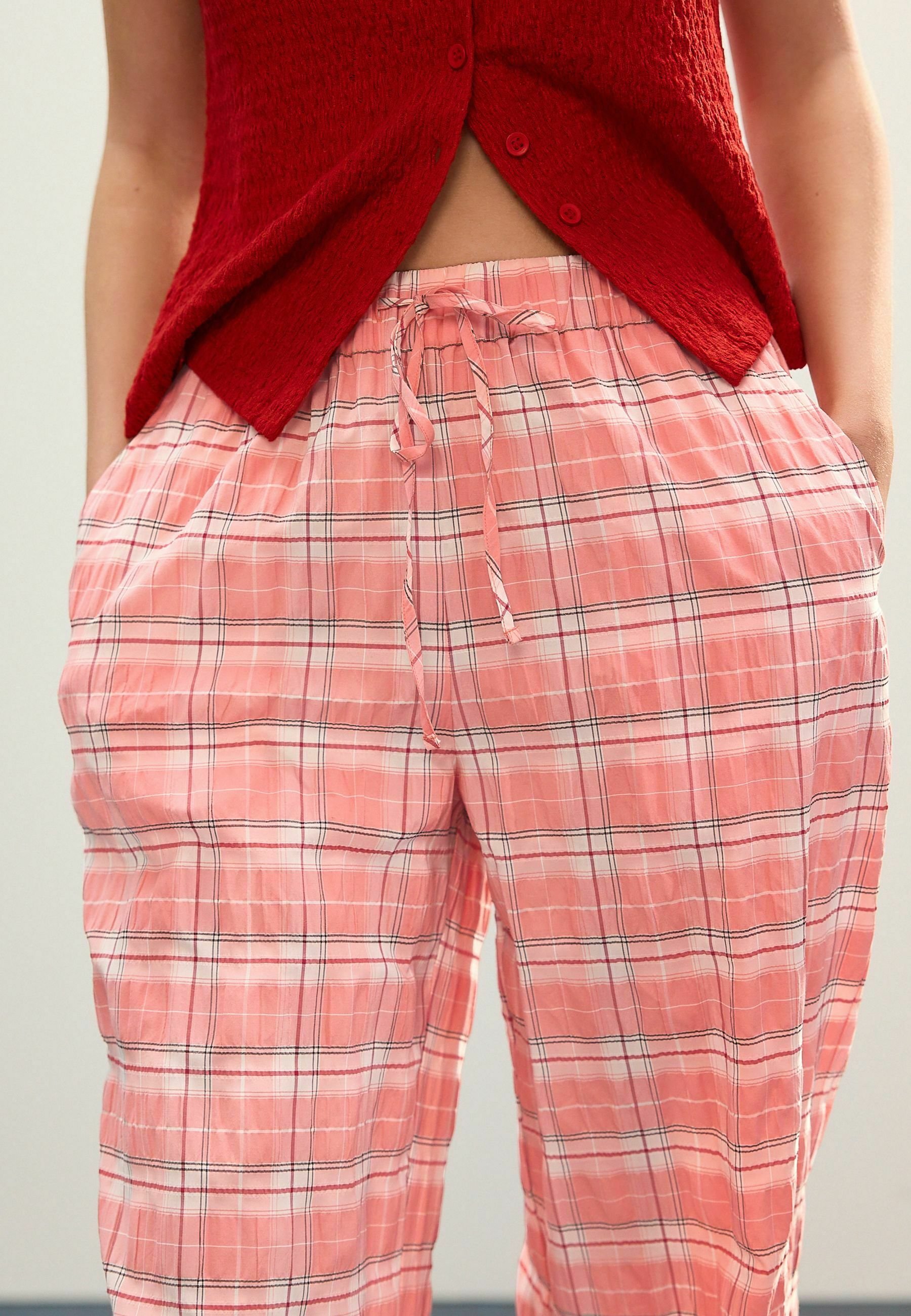 pantaloni a quadri rosa