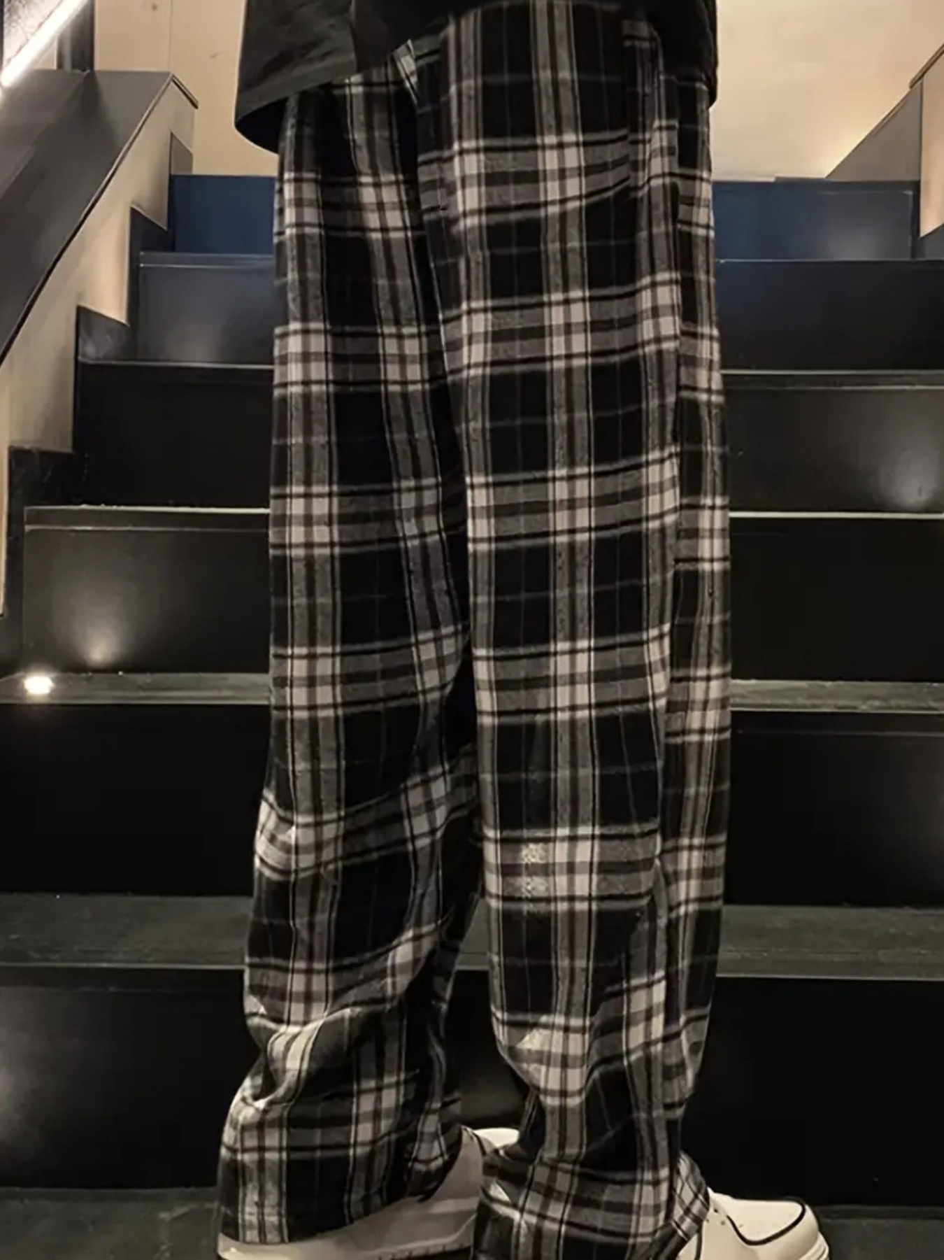 pantaloni a righe nere e bianche