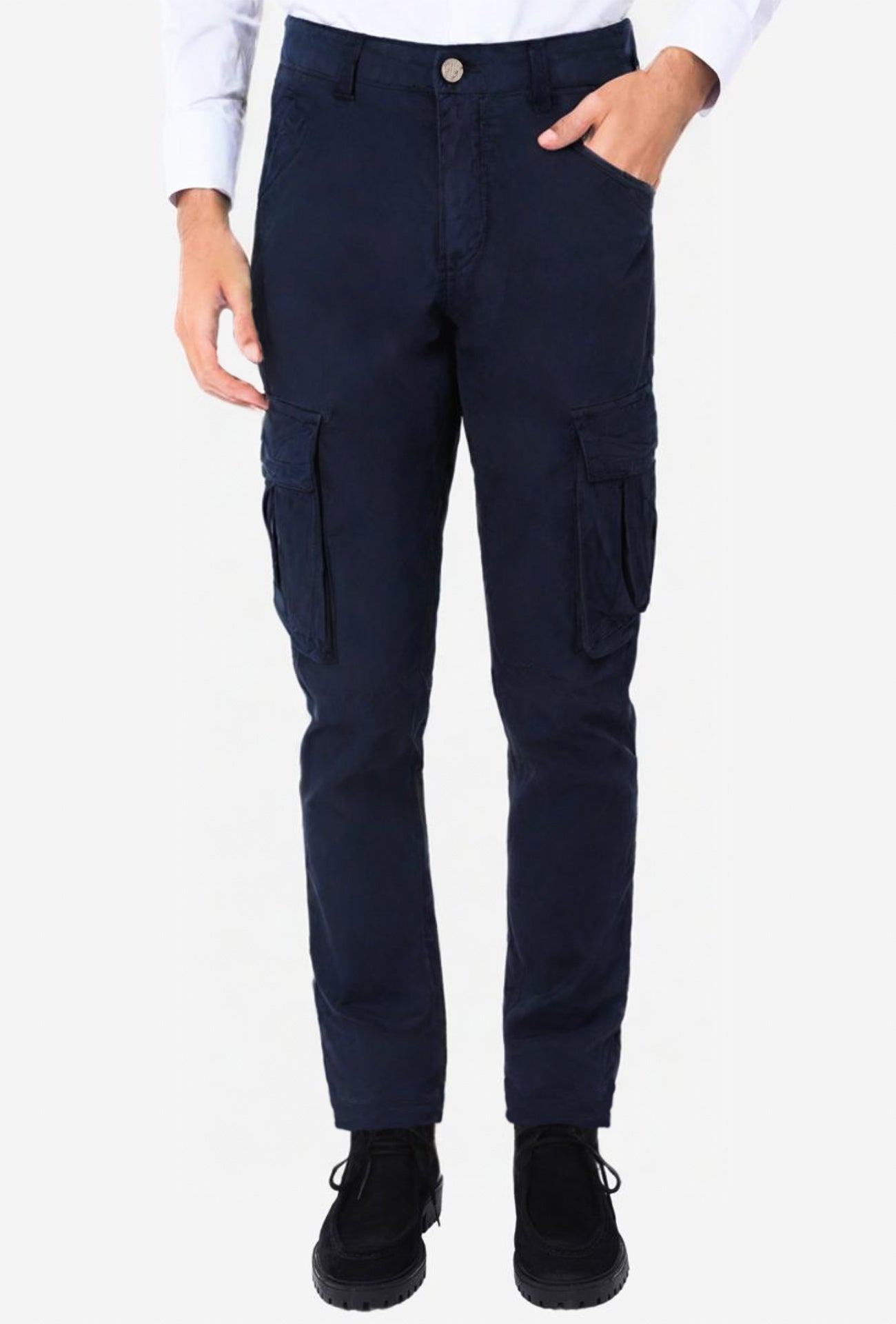 pantaloni blu con tasconi