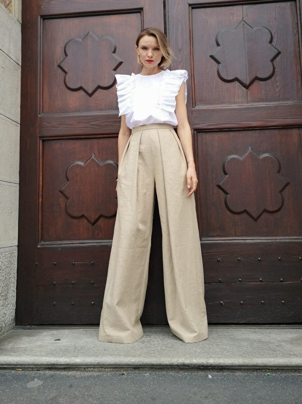 pantaloni con piega davanti
