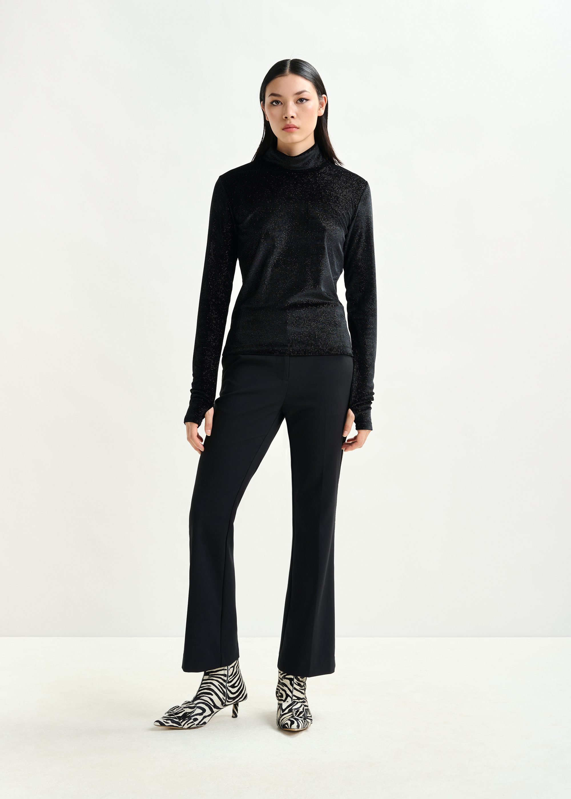 pantaloni con strass laterali