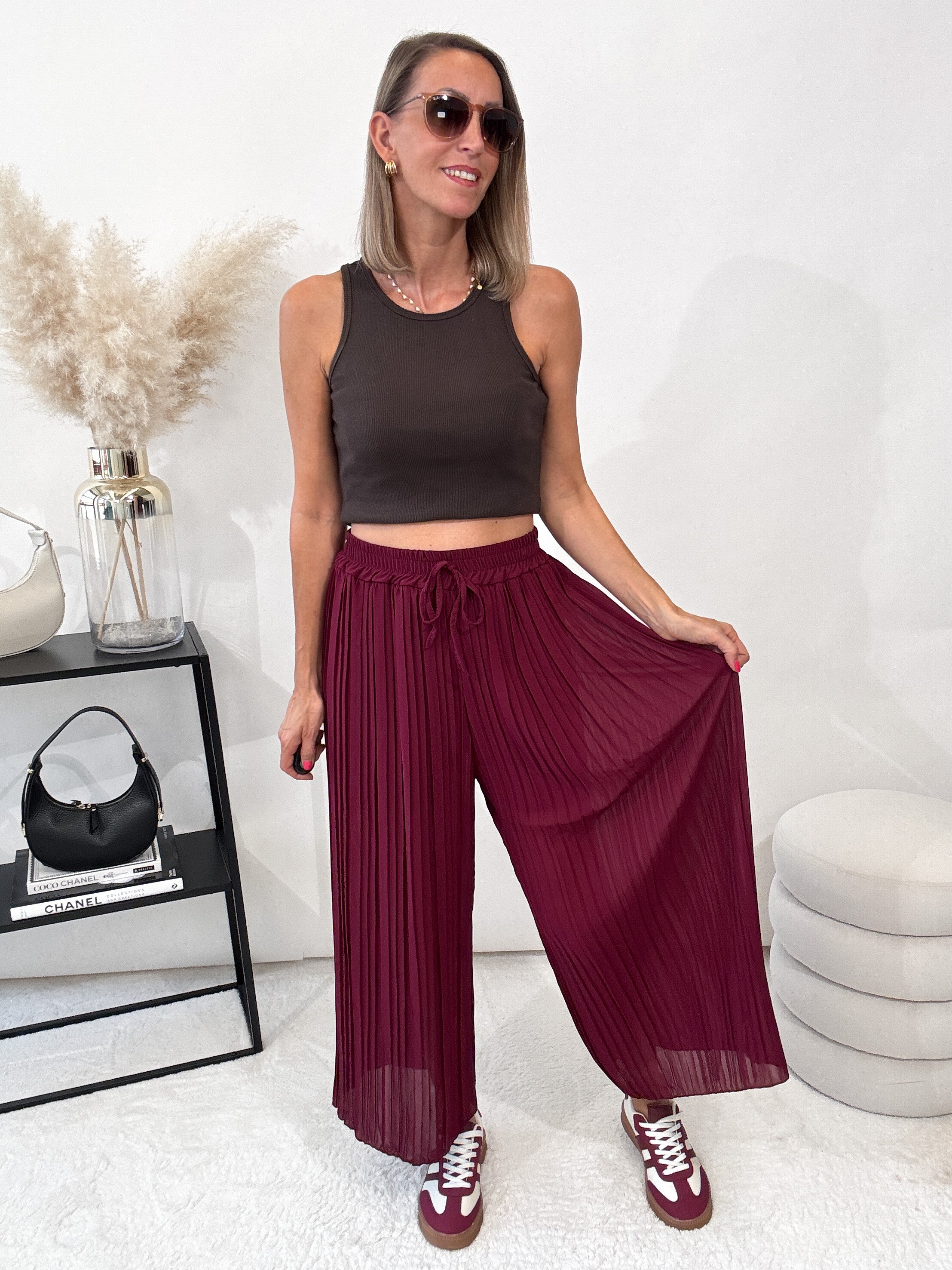 pantaloni culotte bordeaux