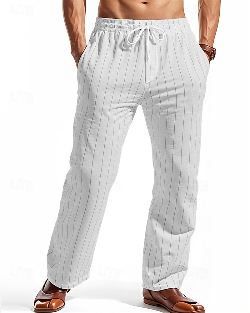 pantaloni di lino a righe uomo