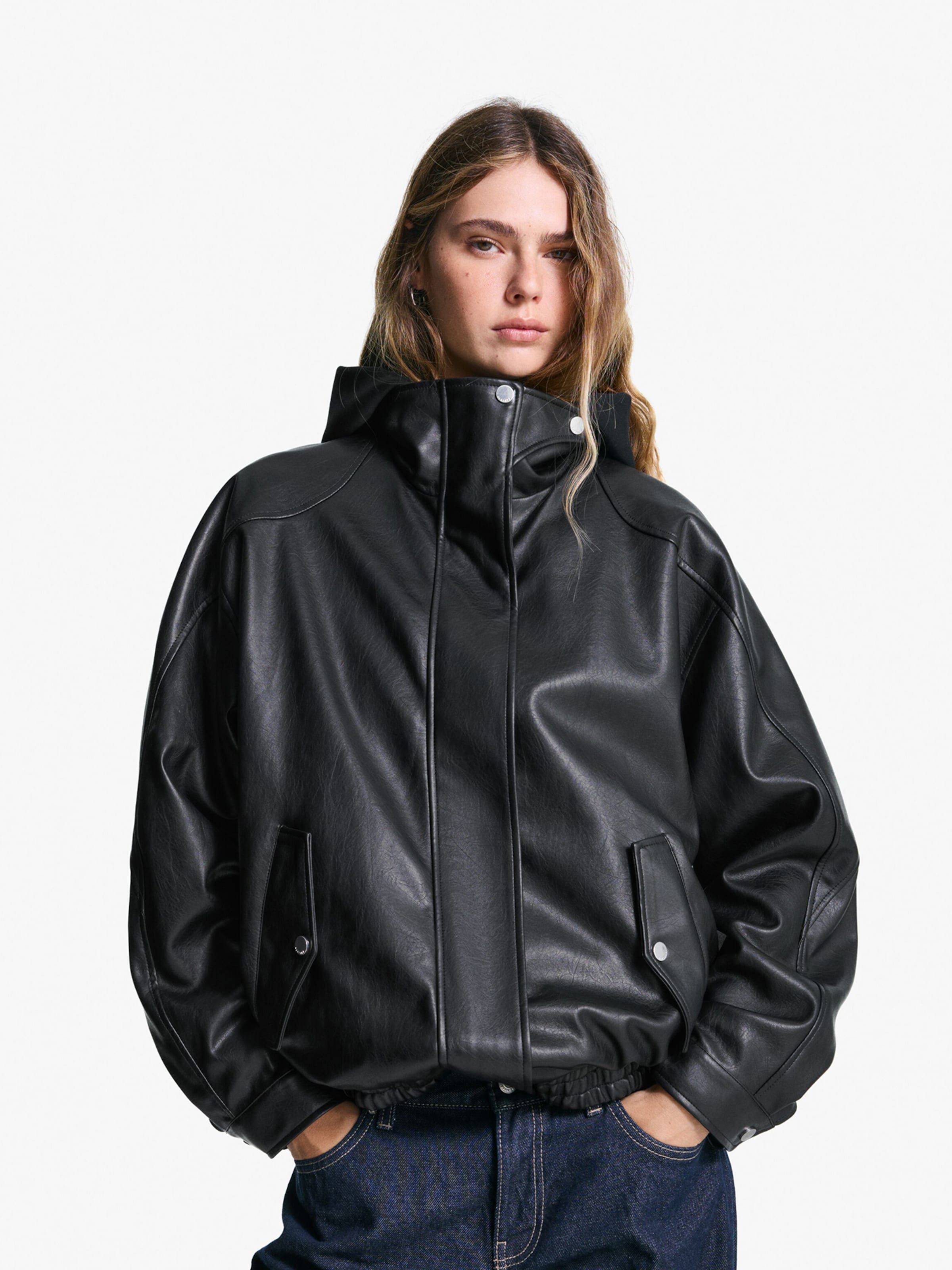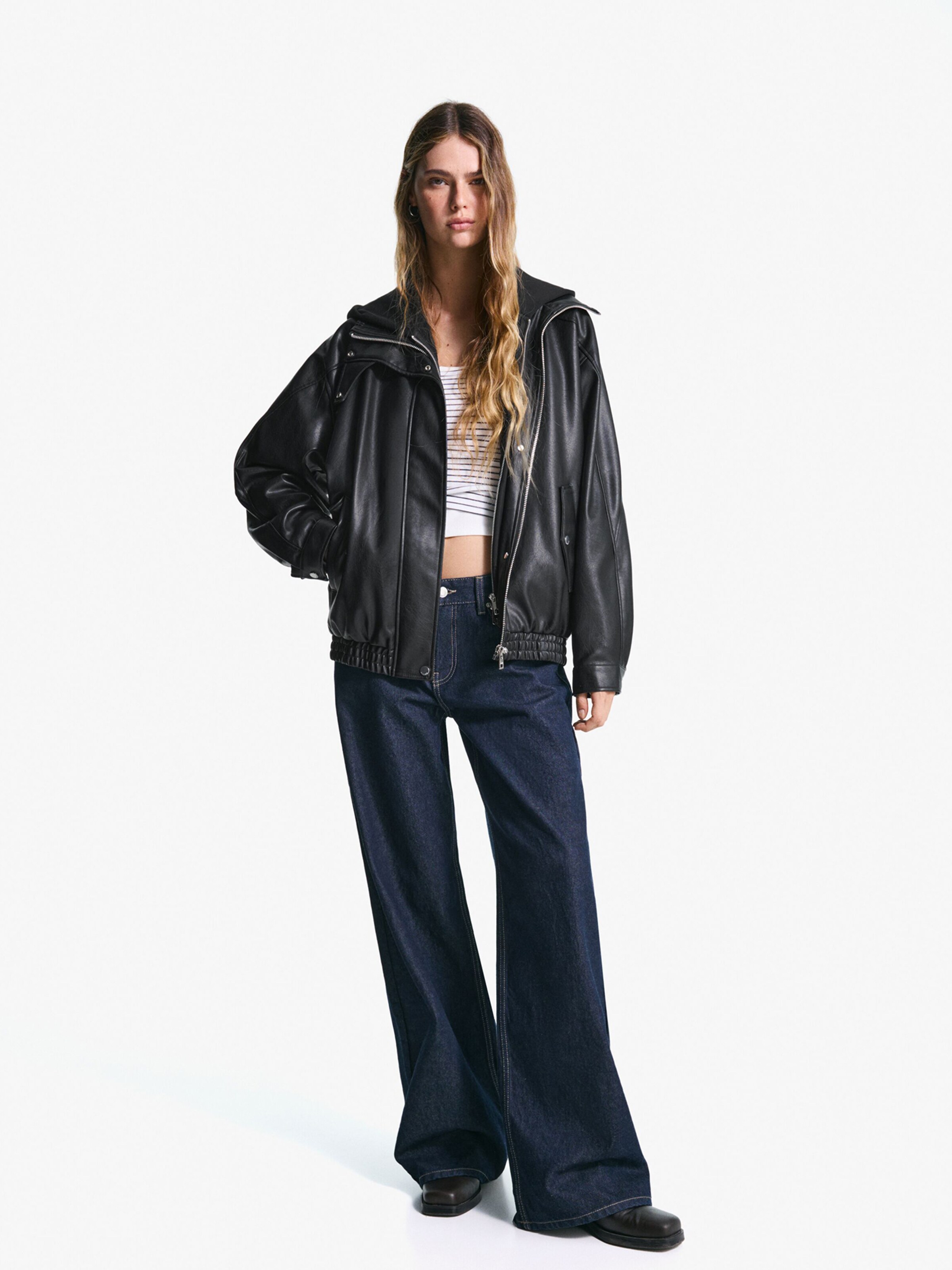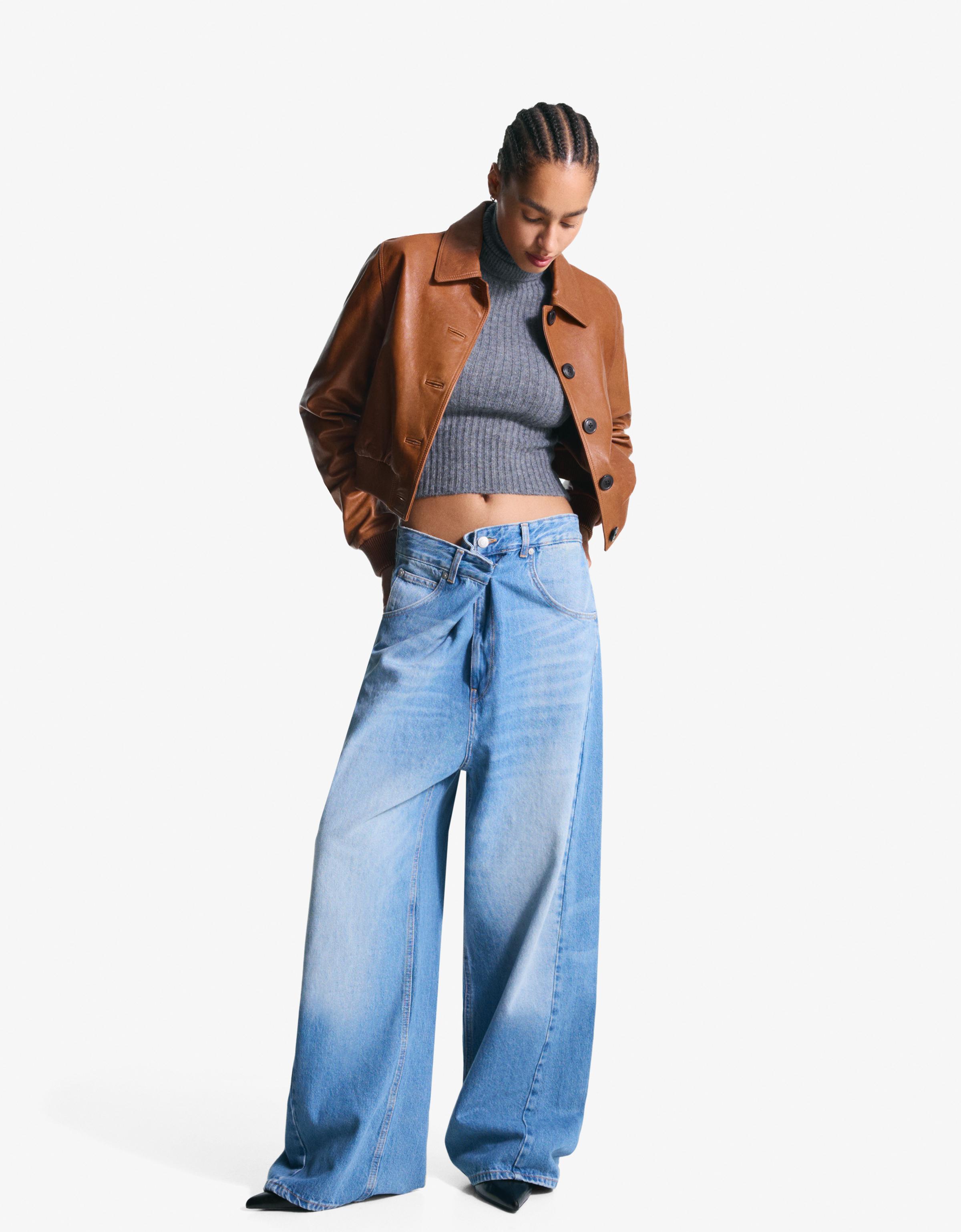 pantaloni di pelle blu bershka