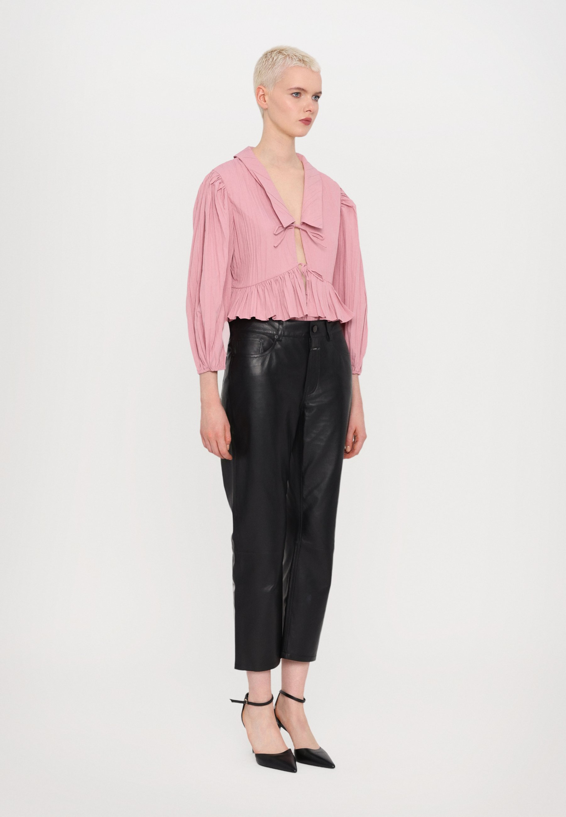 pantaloni di pelle rosa