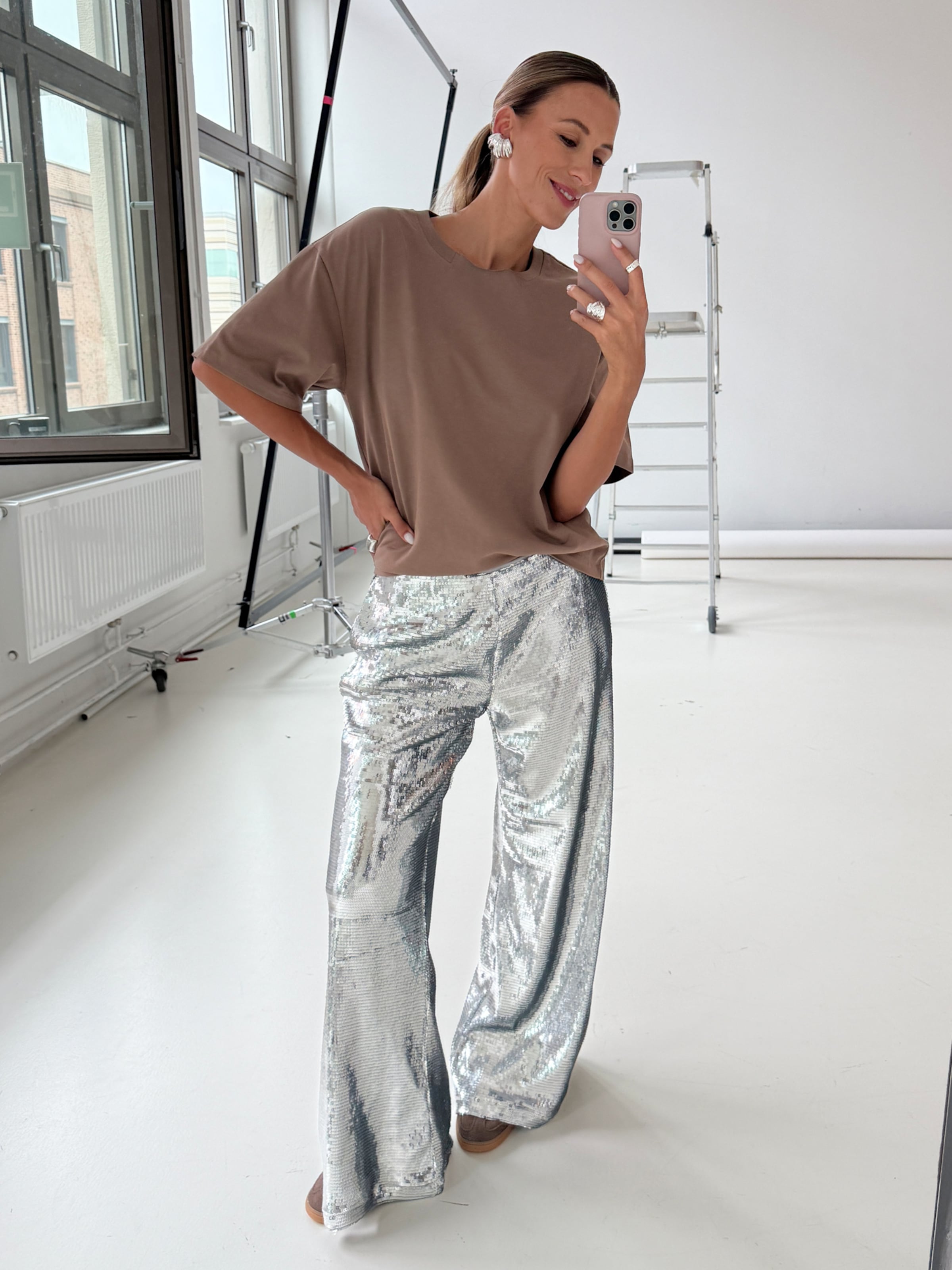 pantaloni donna argento