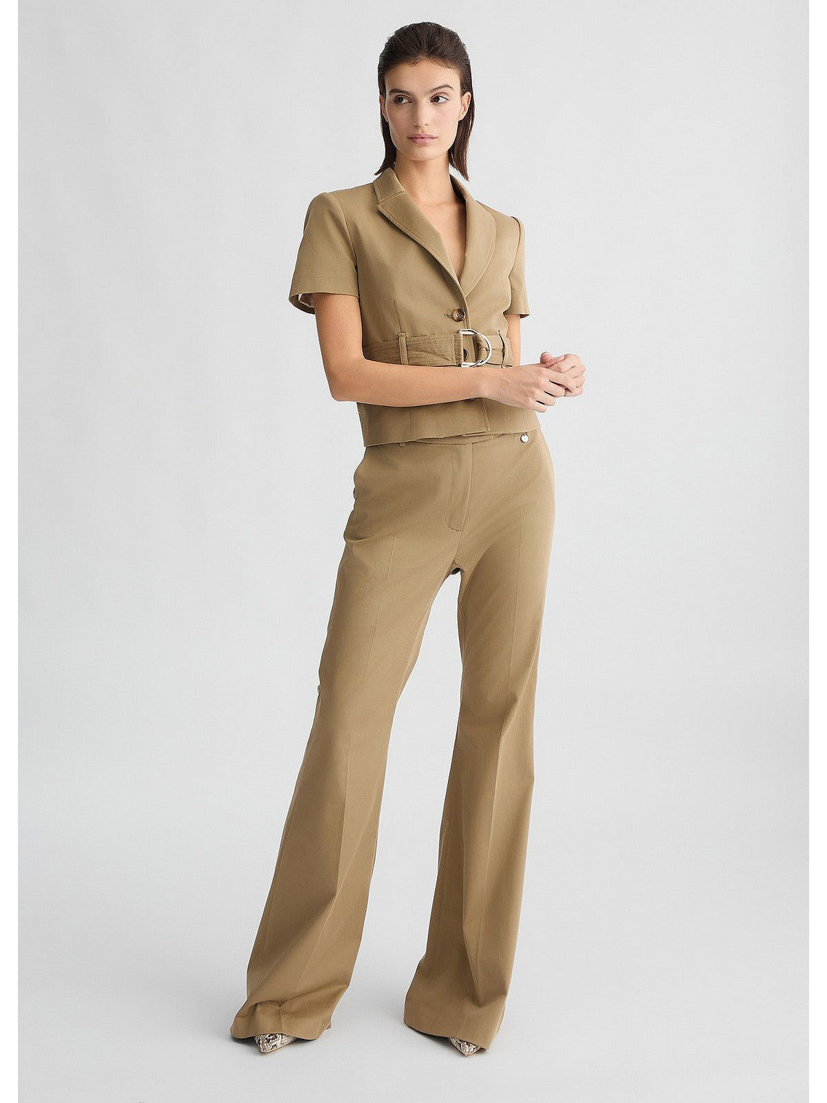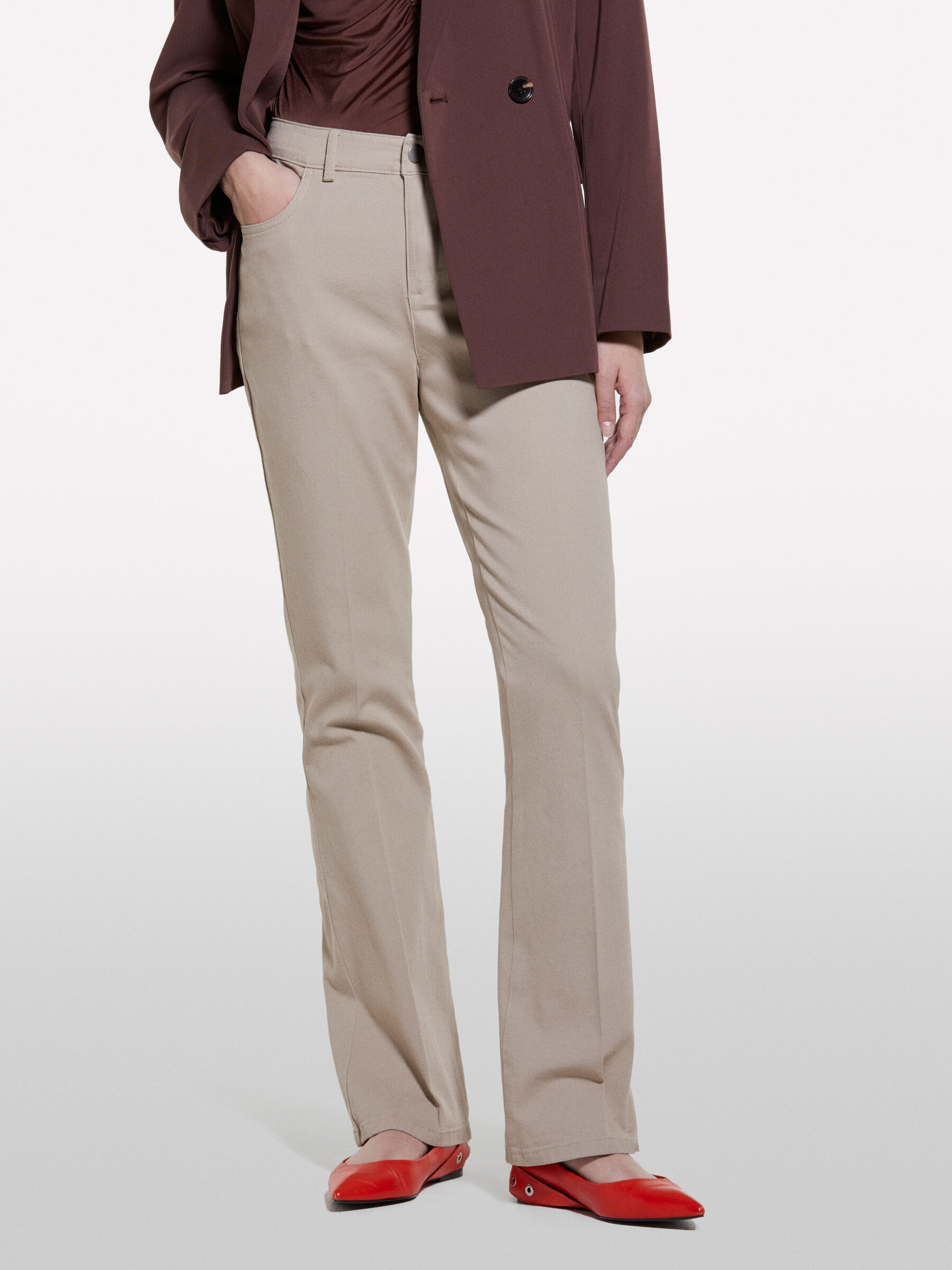 pantaloni flare beige