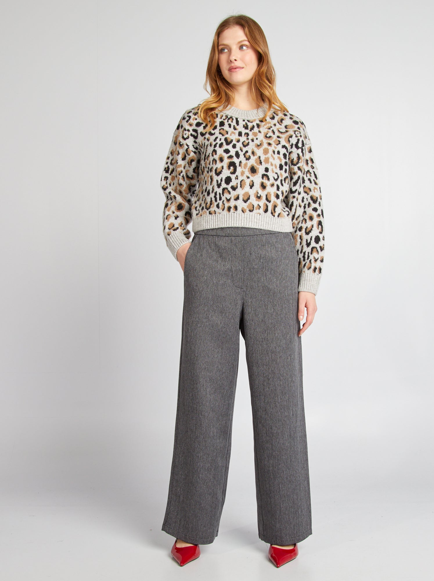 pantaloni grigi larghi donna