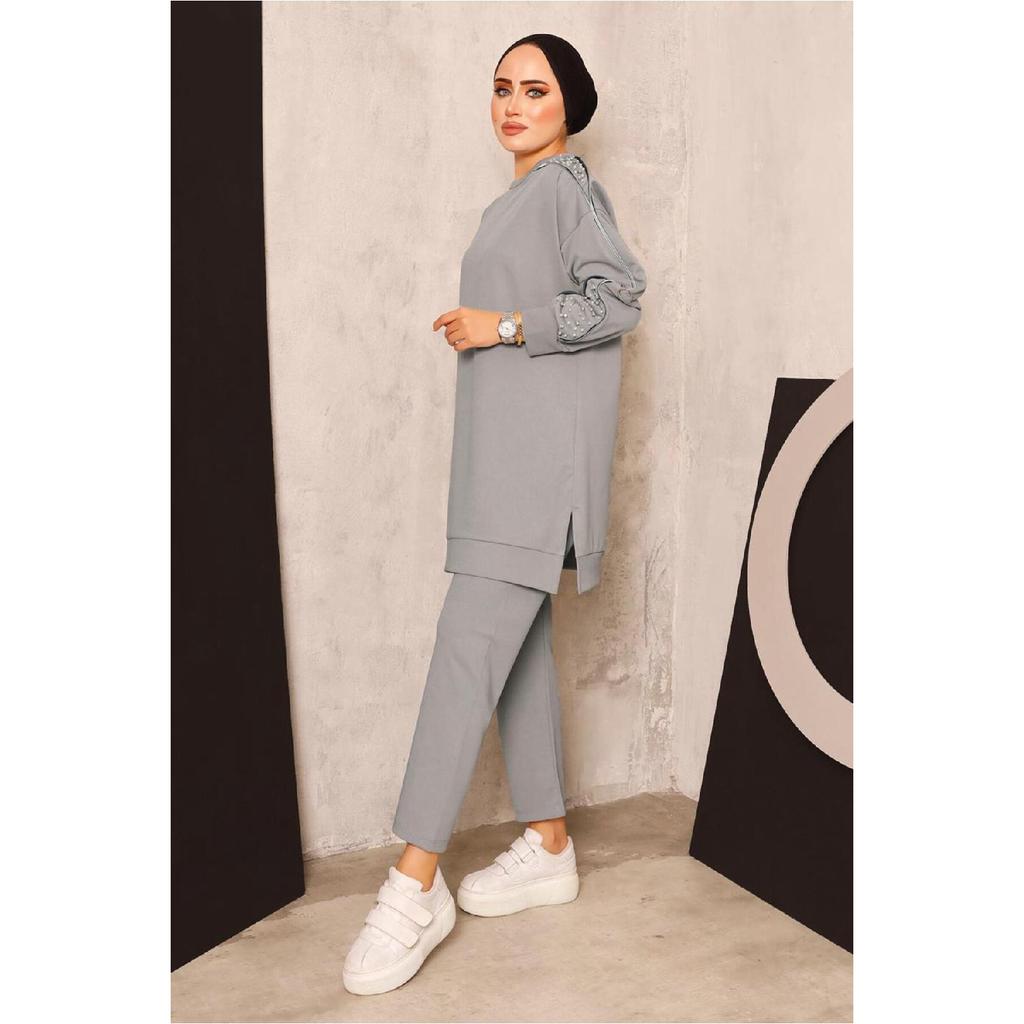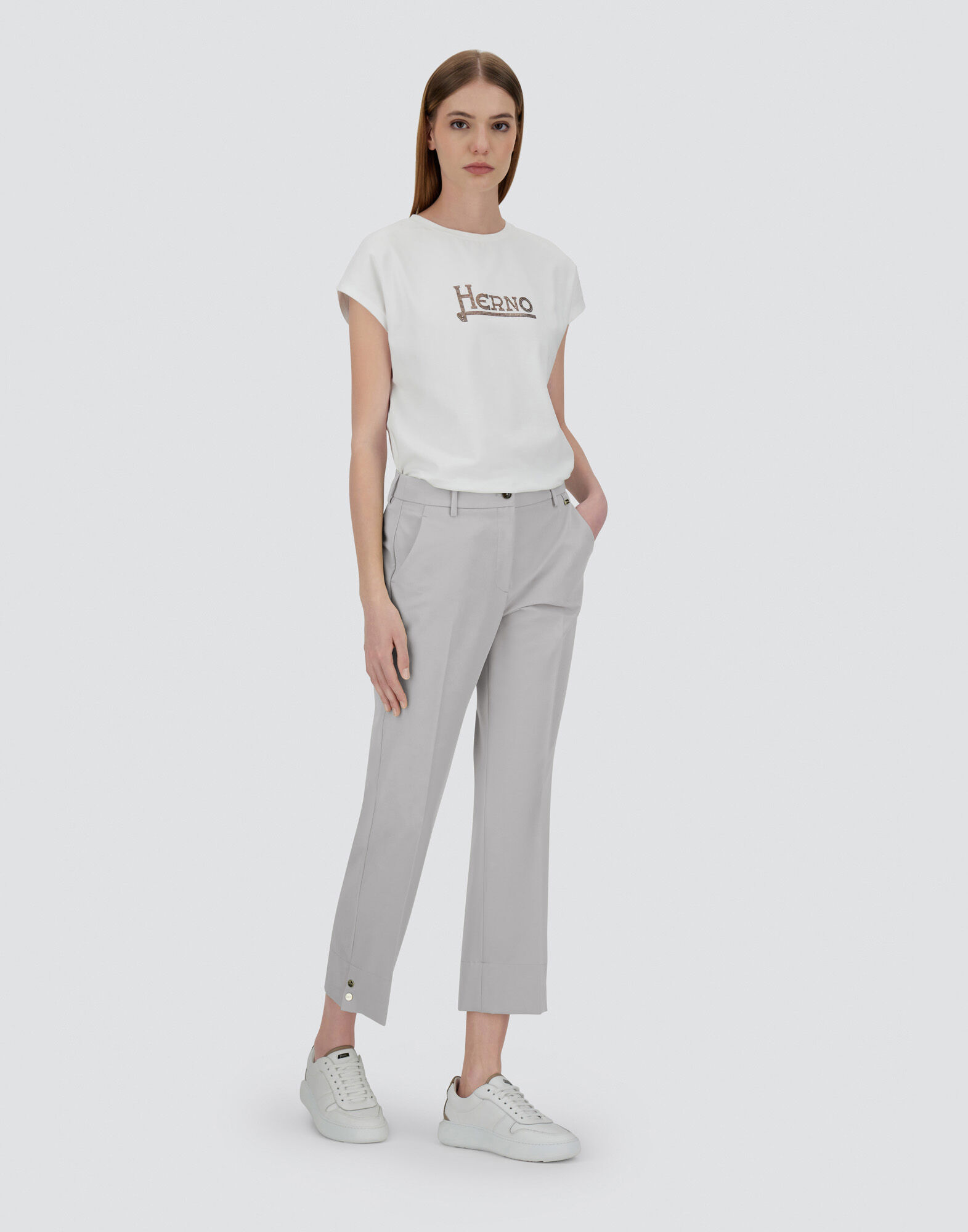 pantaloni grigio perla donna