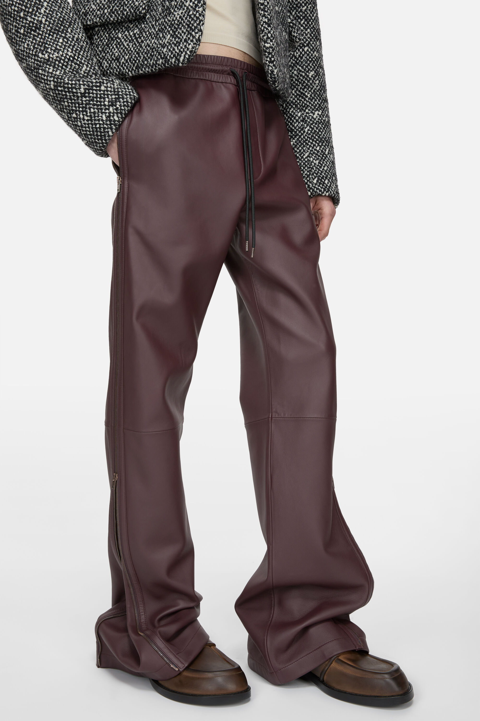 pantaloni in pelle bordeaux