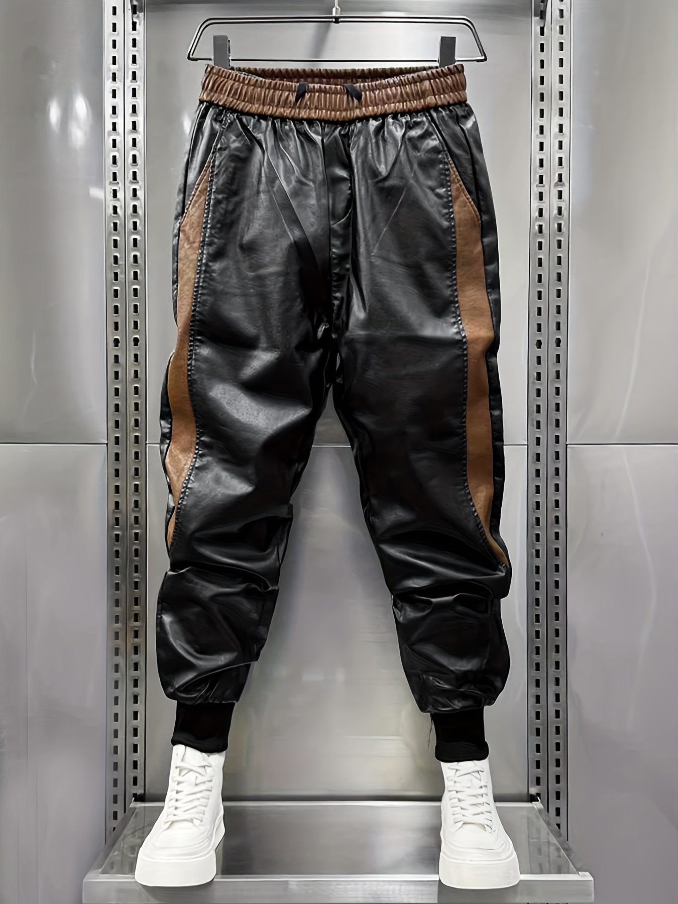 pantaloni in pelle con cintura