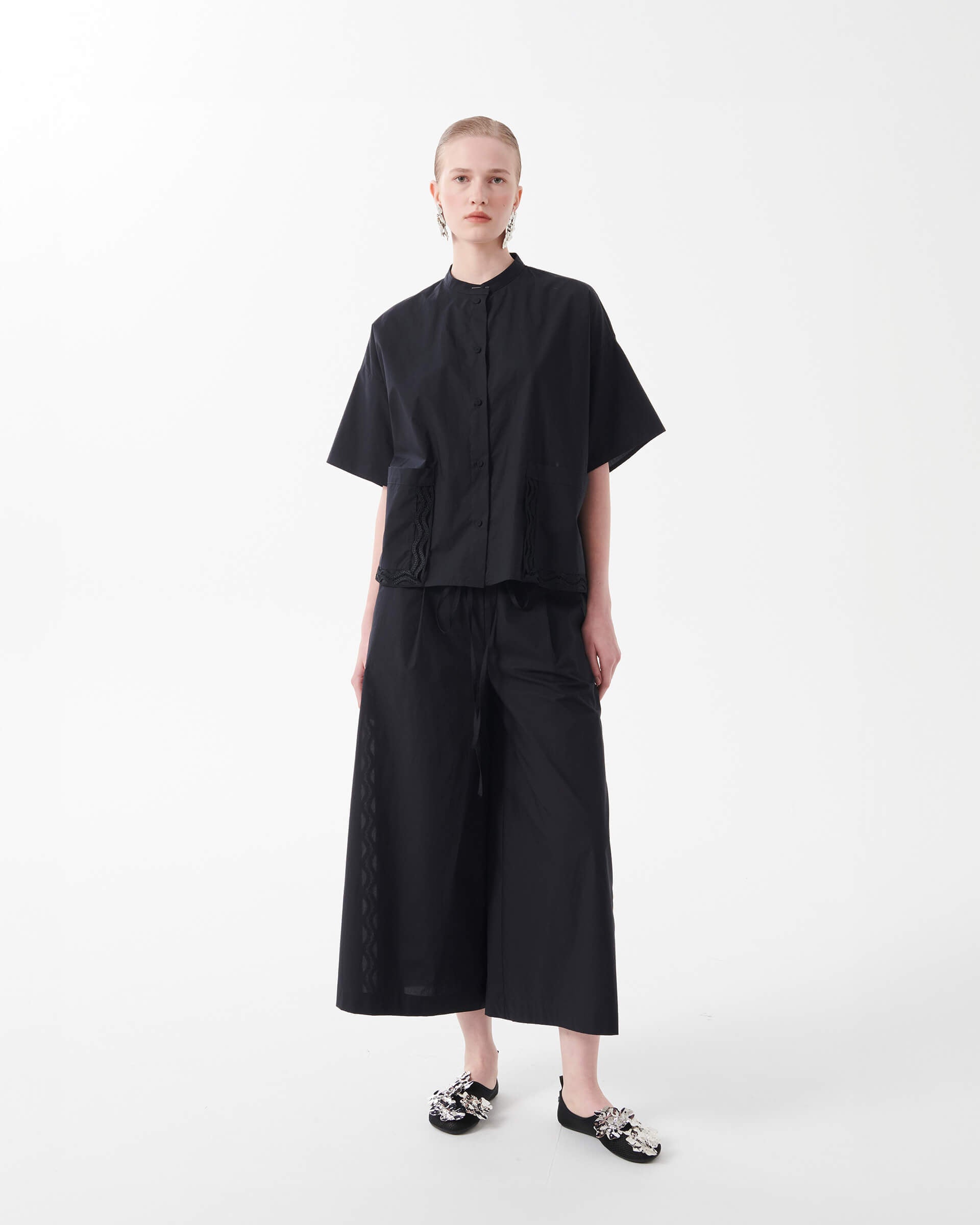 pantaloni larghi in pizzo