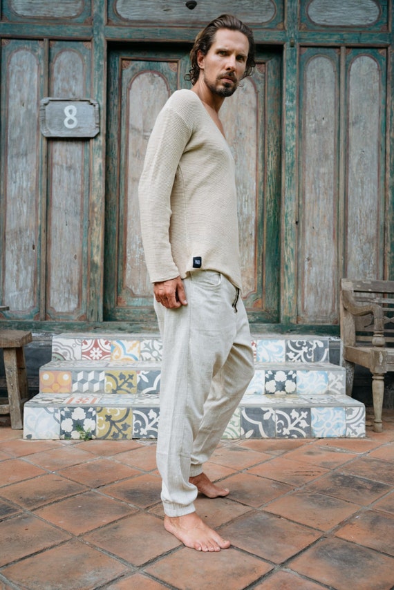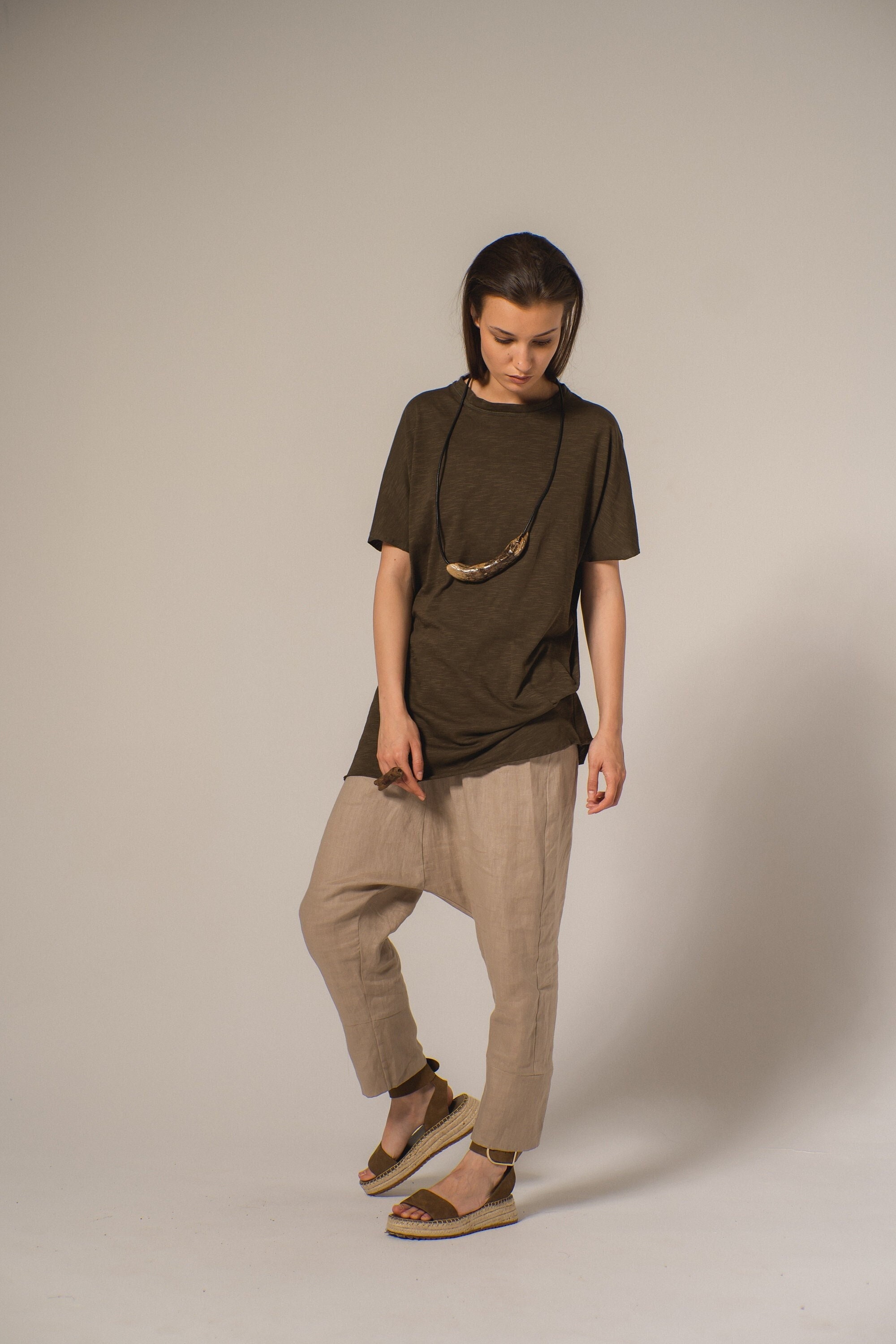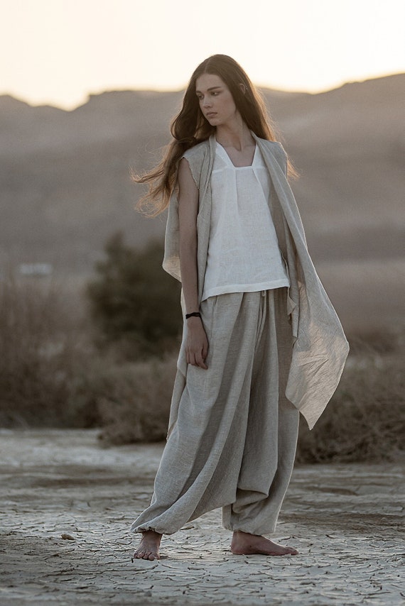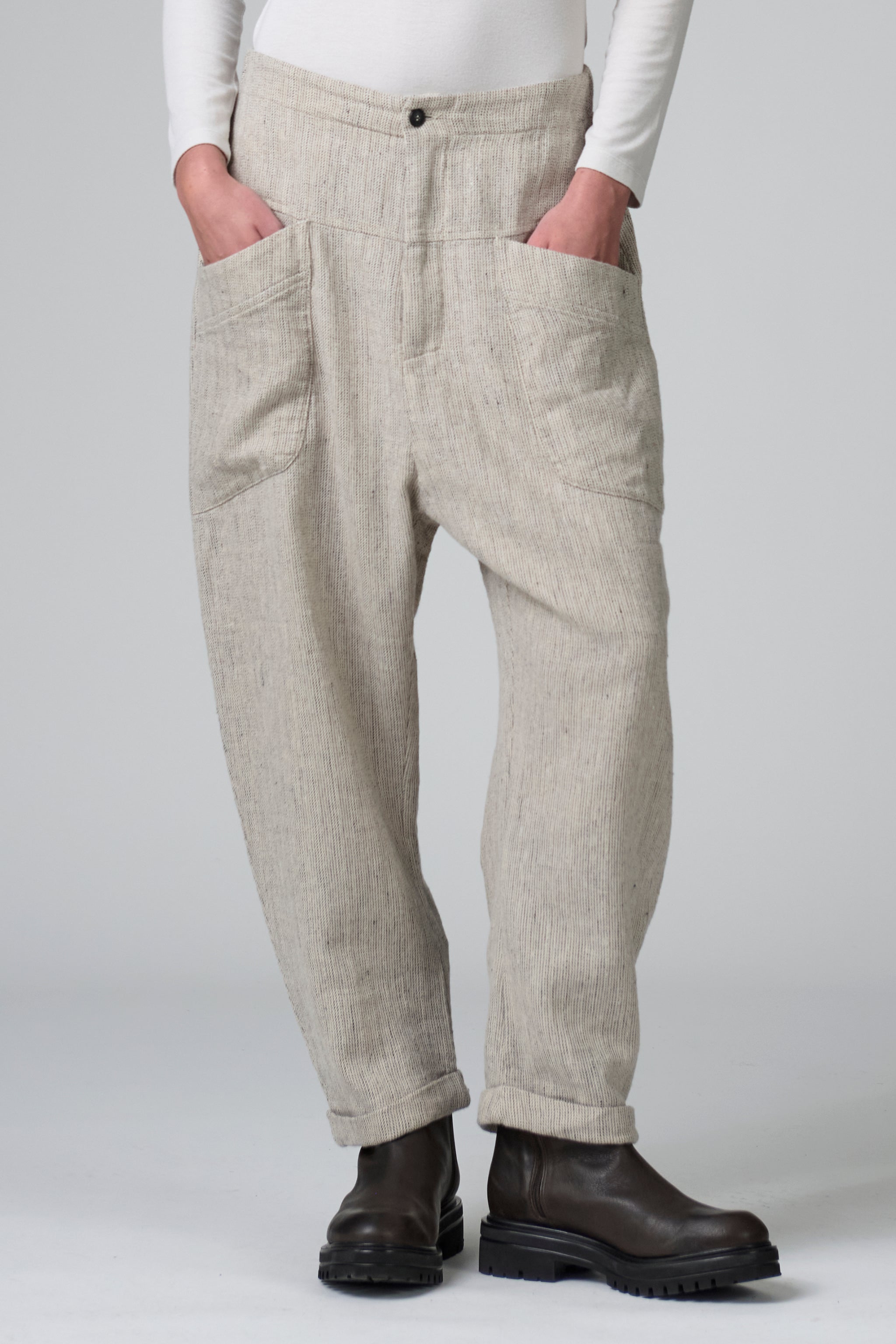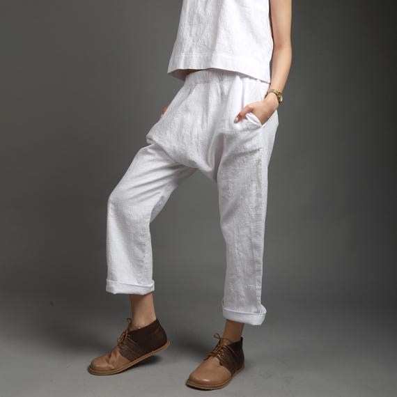 pantaloni lino cavallo basso