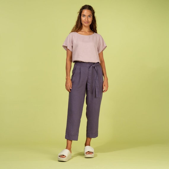 pantaloni lino viola