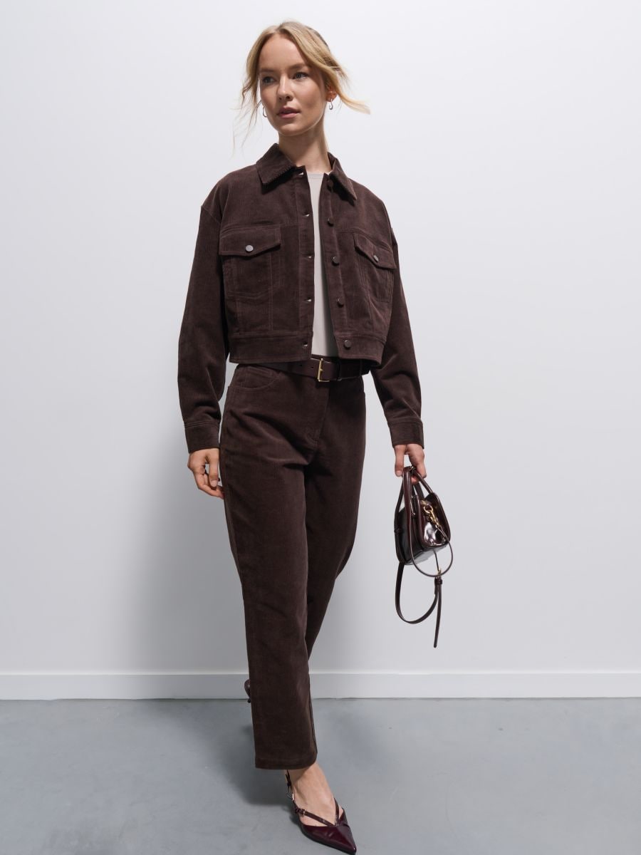 pantaloni marroni a costine