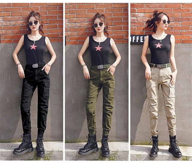 pantaloni militari neri donna