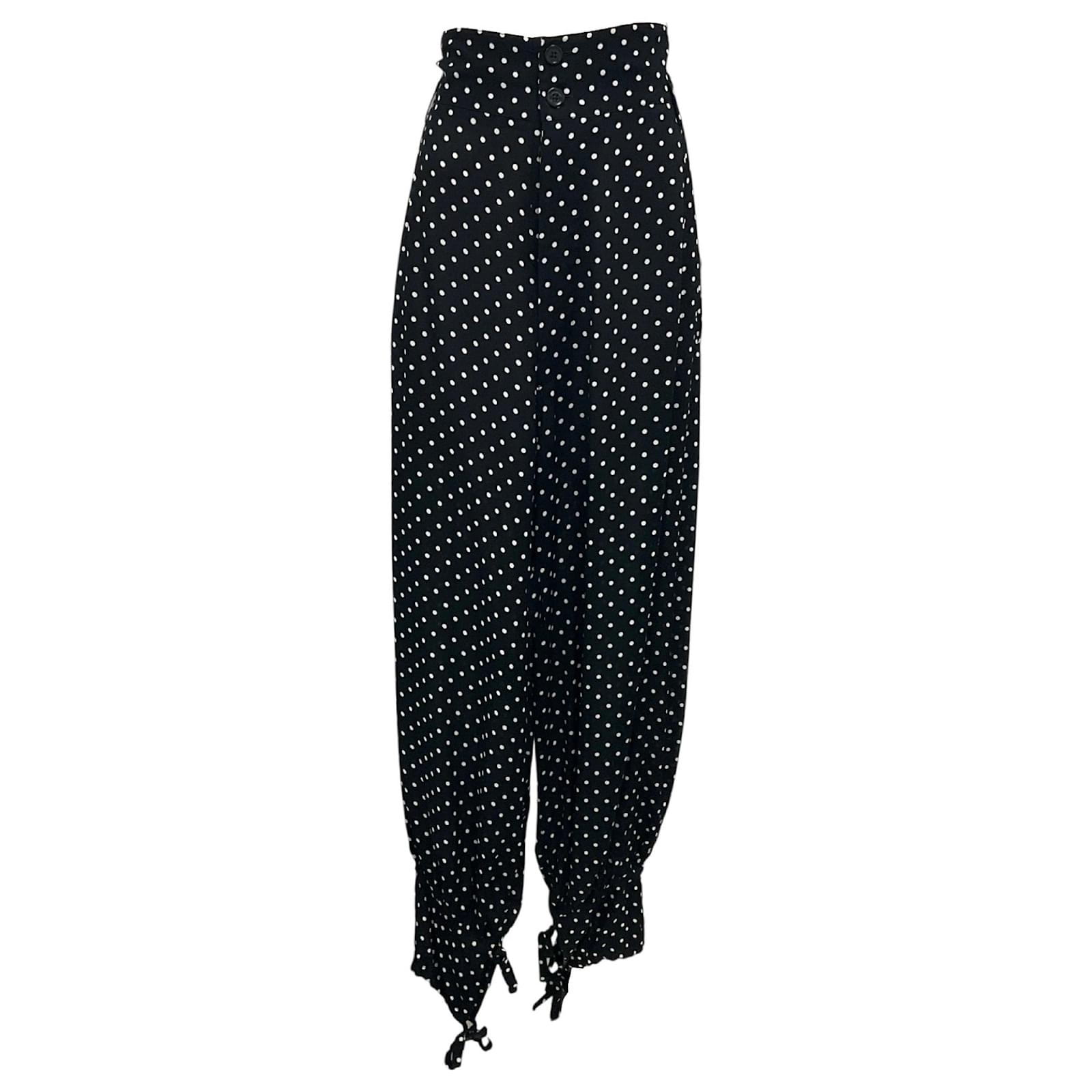 pantaloni neri a pois bianchi