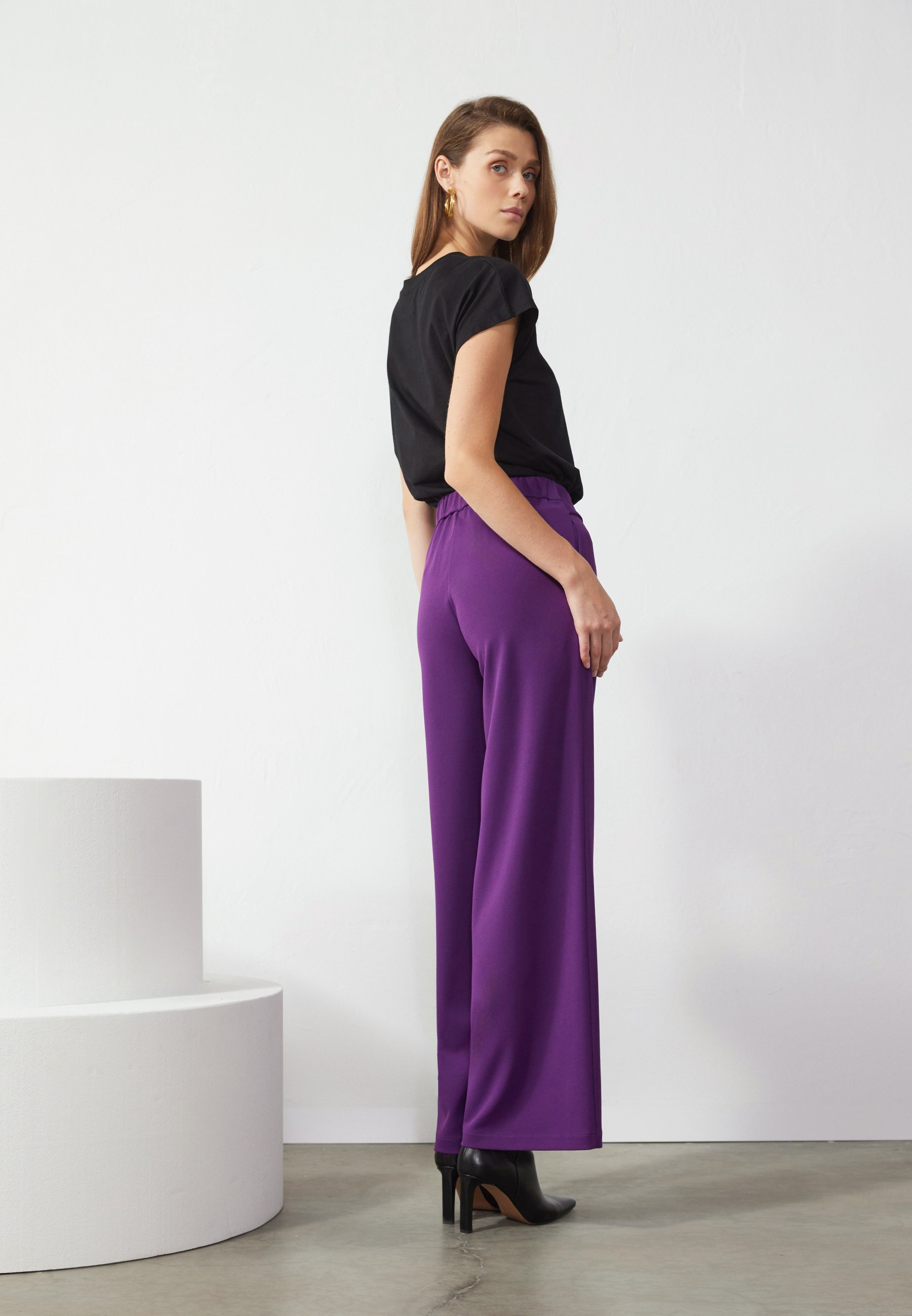 pantaloni neri e viola