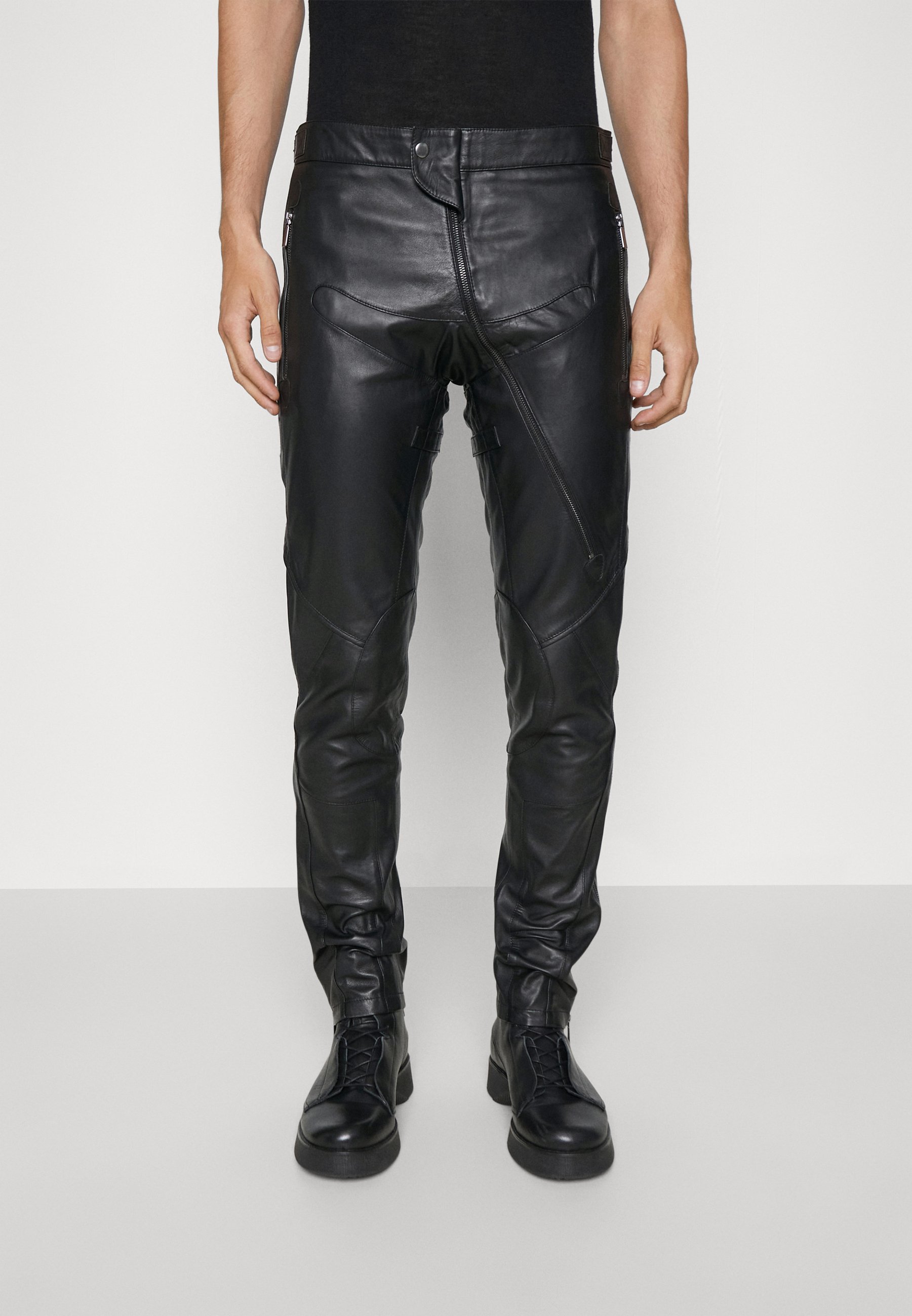 pantaloni pelle e tessuto