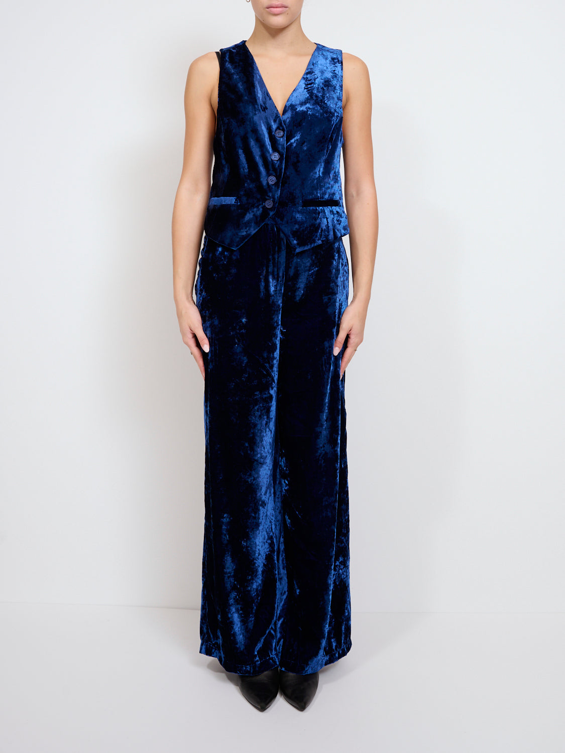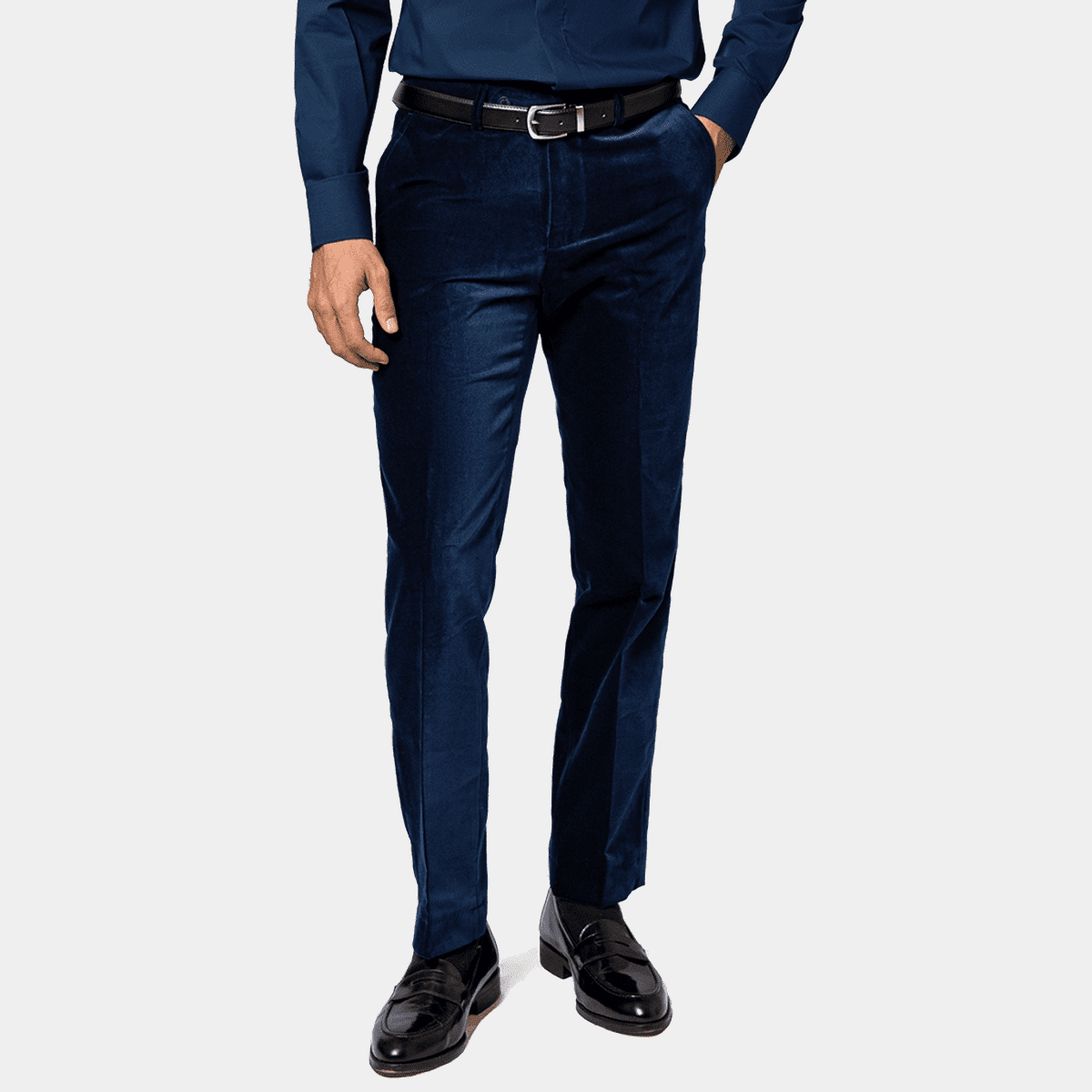 pantaloni velluto liscio blu