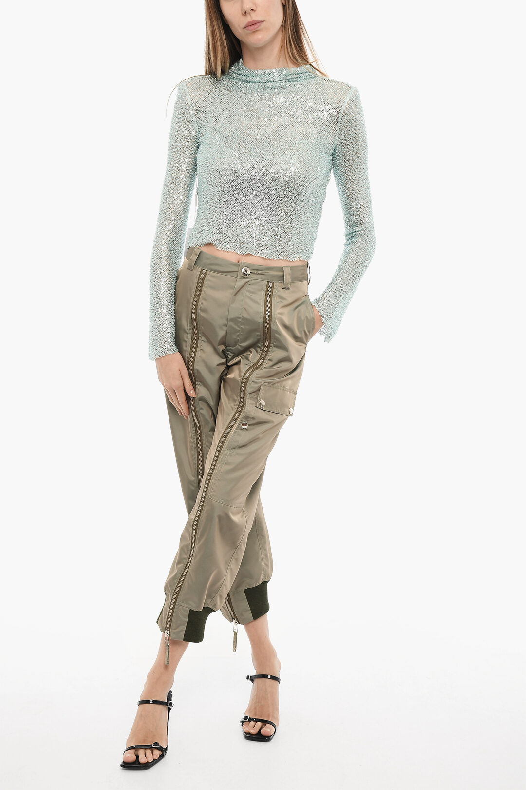 top brillantini maniche lunghe