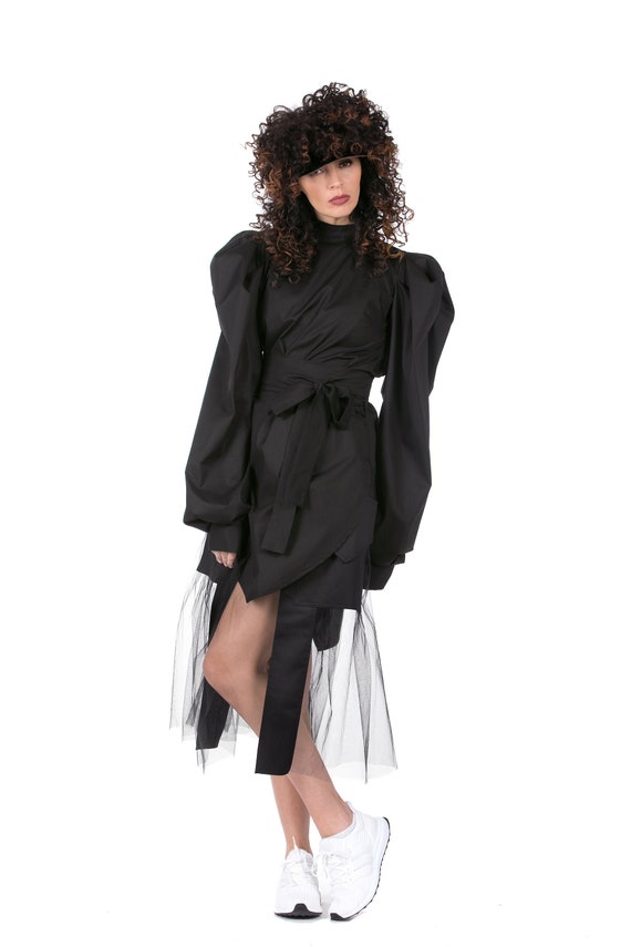top nero con maniche a sbuffo