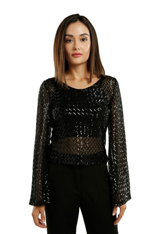 top paillettes maniche lunghe