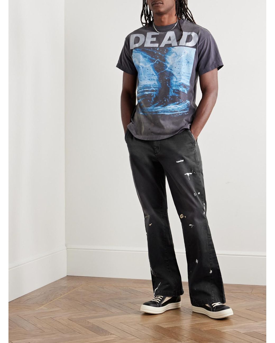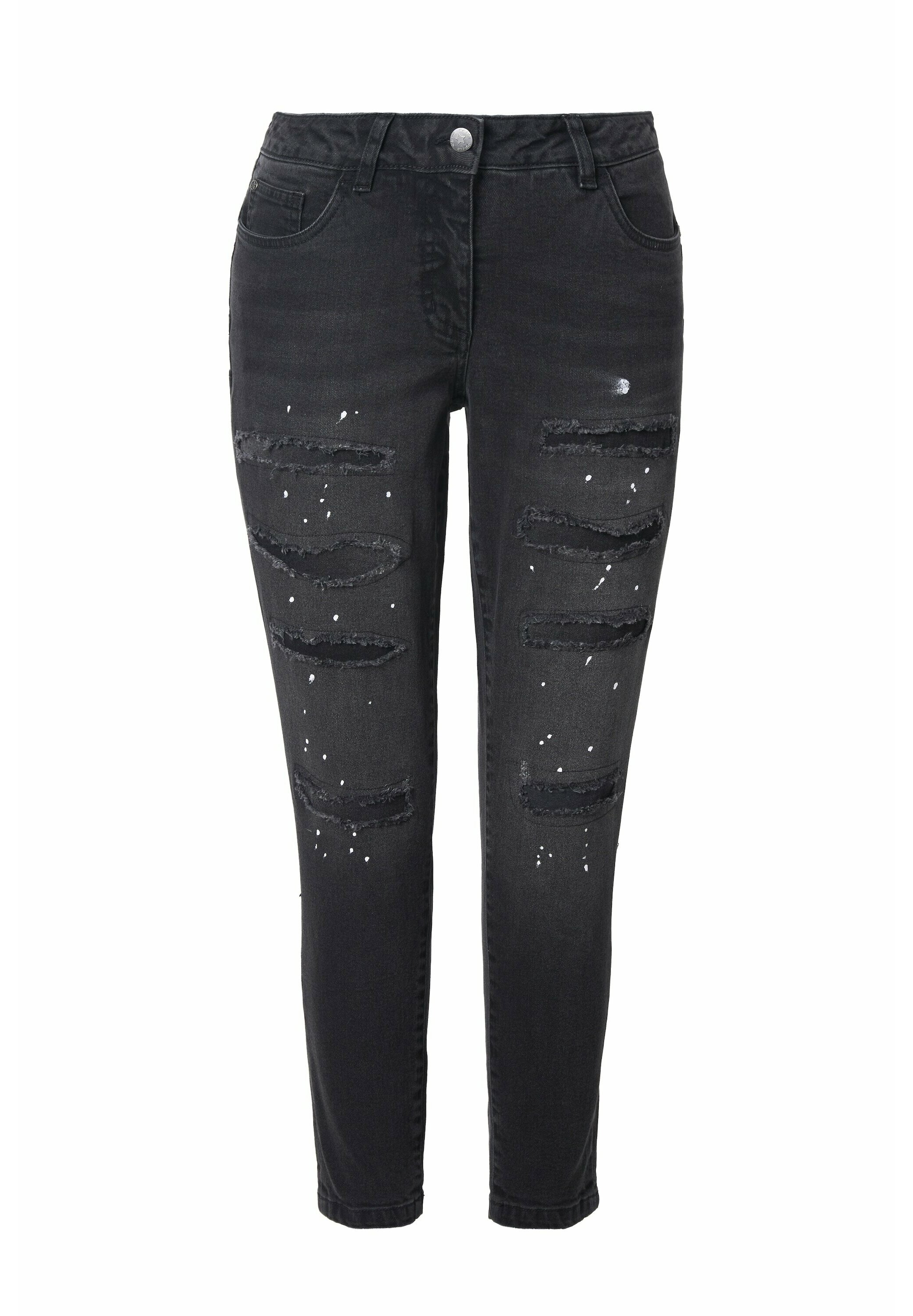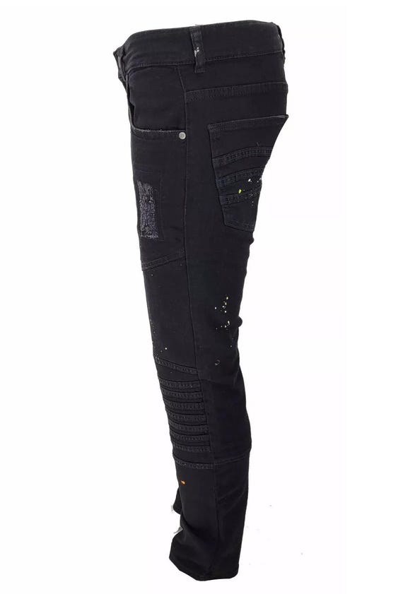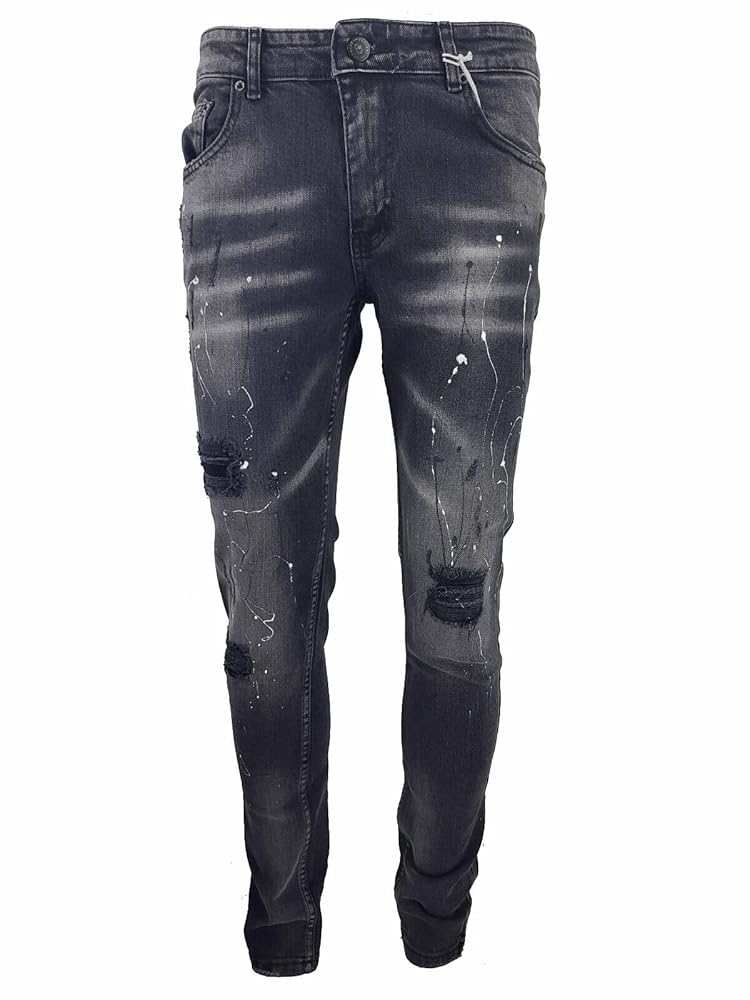 jeans neri con schizzi di vernice uomo