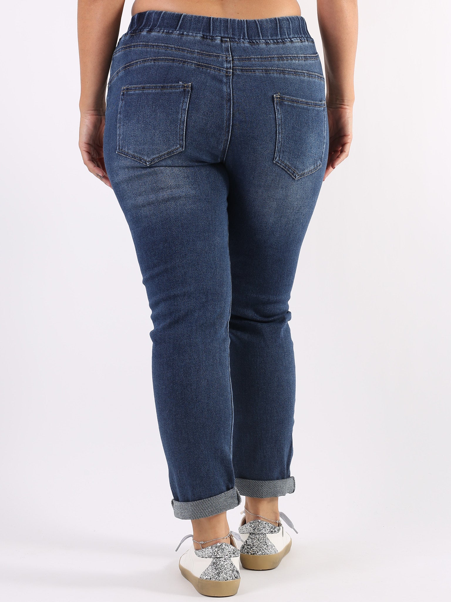 jeans vita alta con fiocco