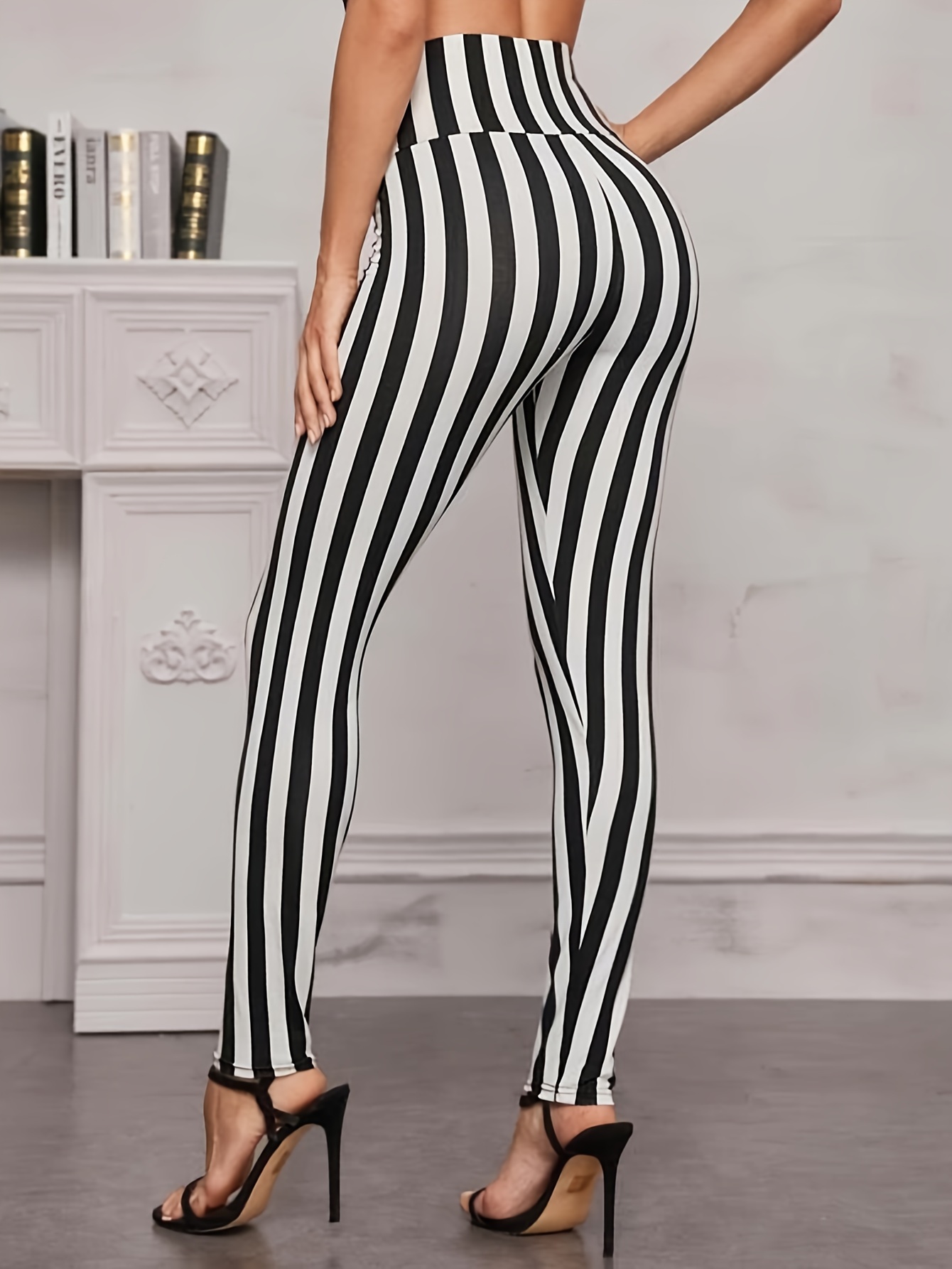 leggings righe verticali bianche e nere