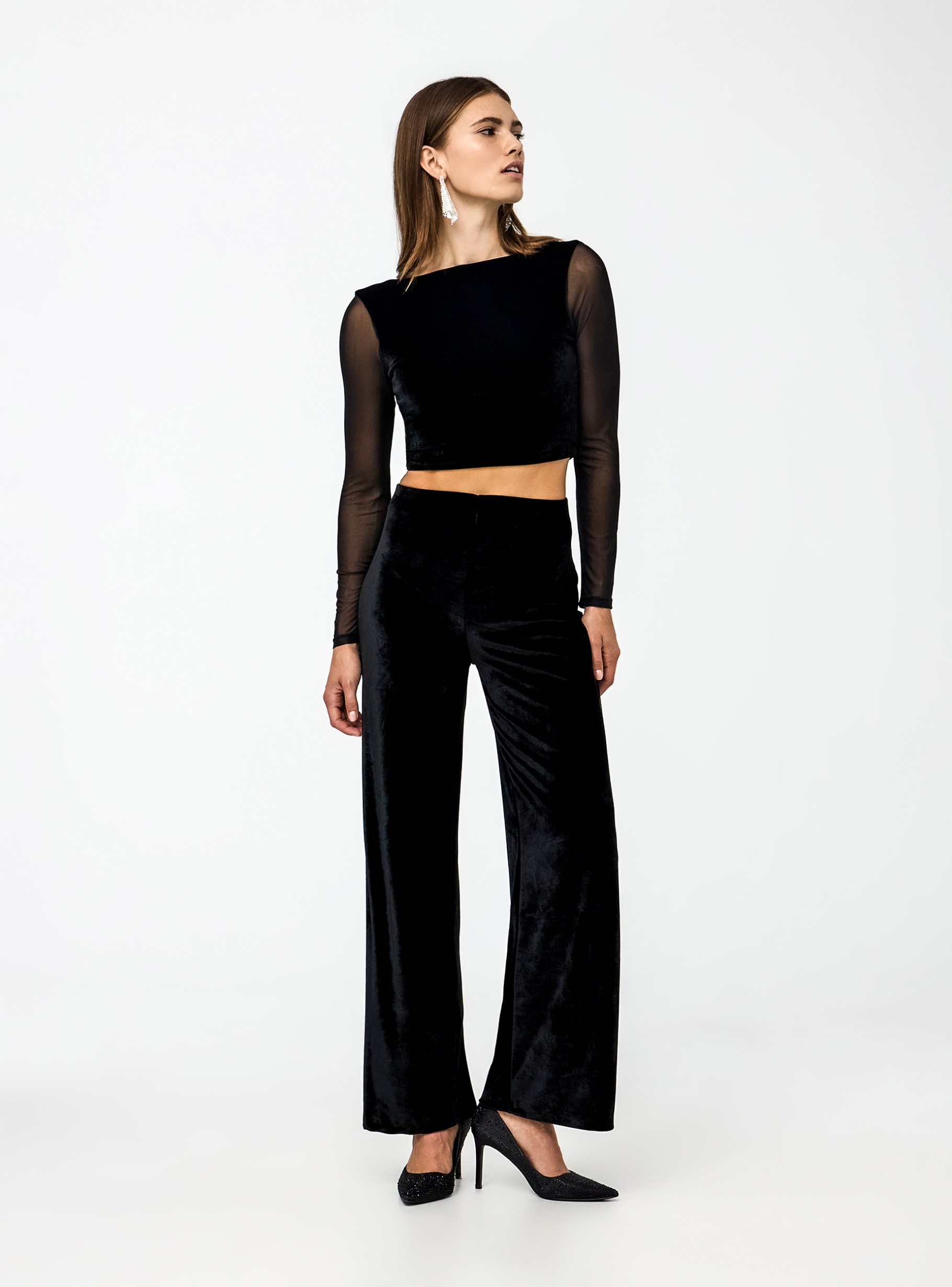 outfit pantaloni di velluto neri