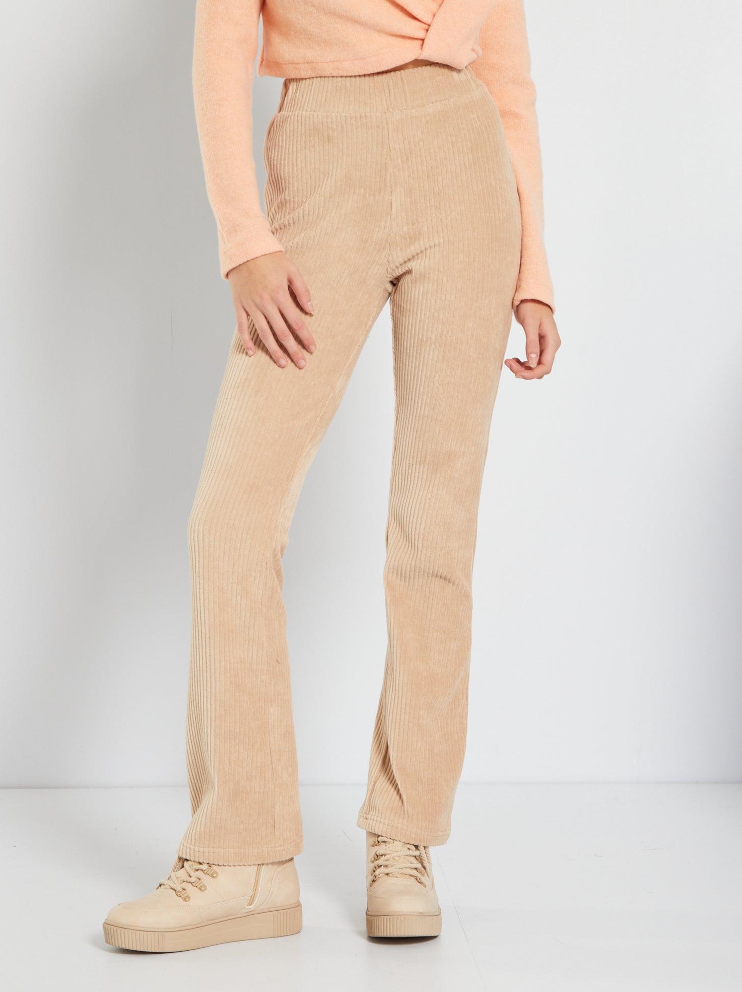 pantaloni a coste beige