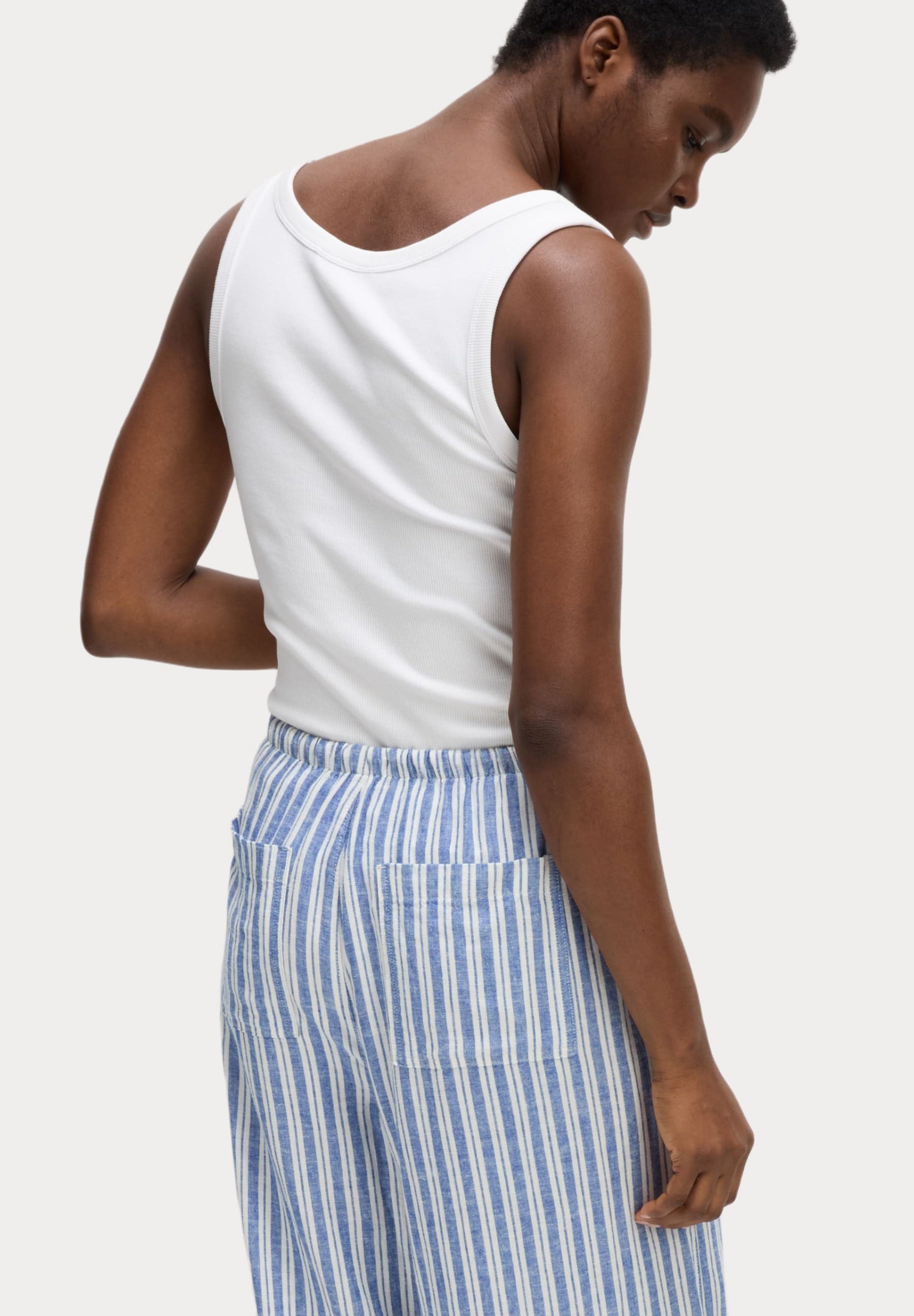 pantaloni a righe bianche e blu