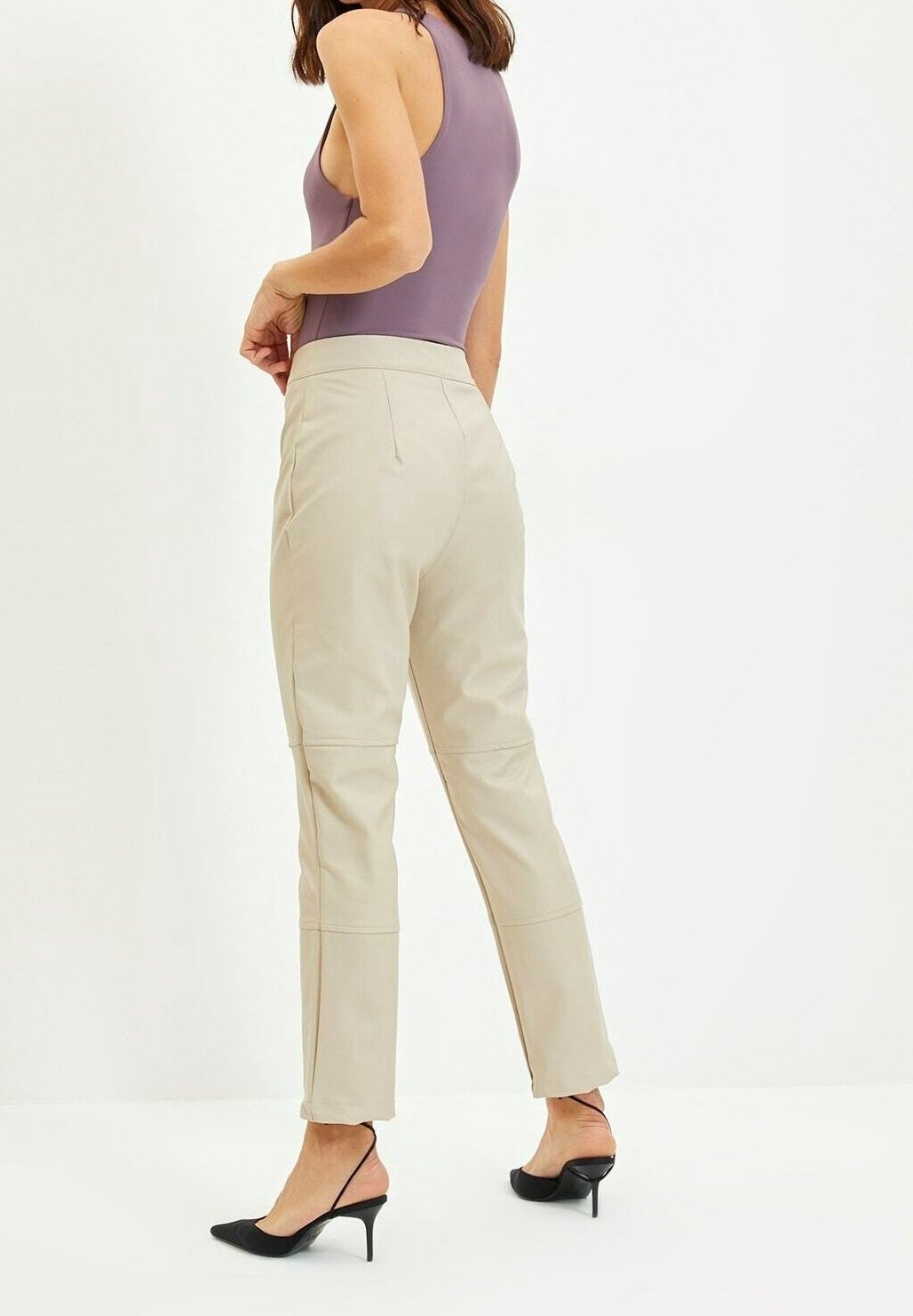 pantaloni beige donna vita alta