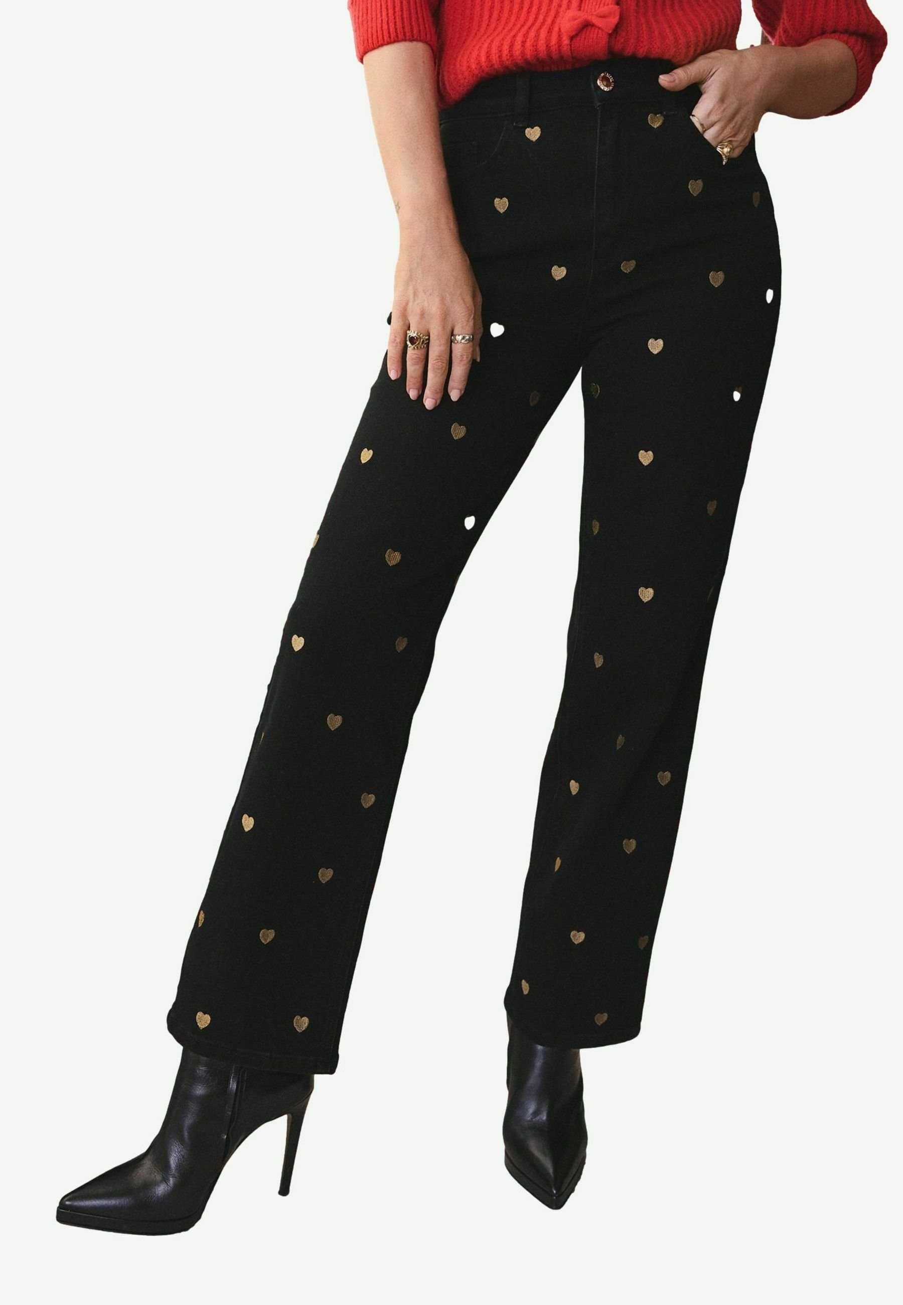 pantaloni con cuore sulla tasca