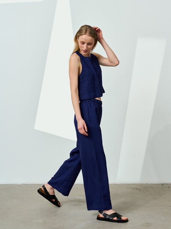pantaloni di lino con elastico in vita