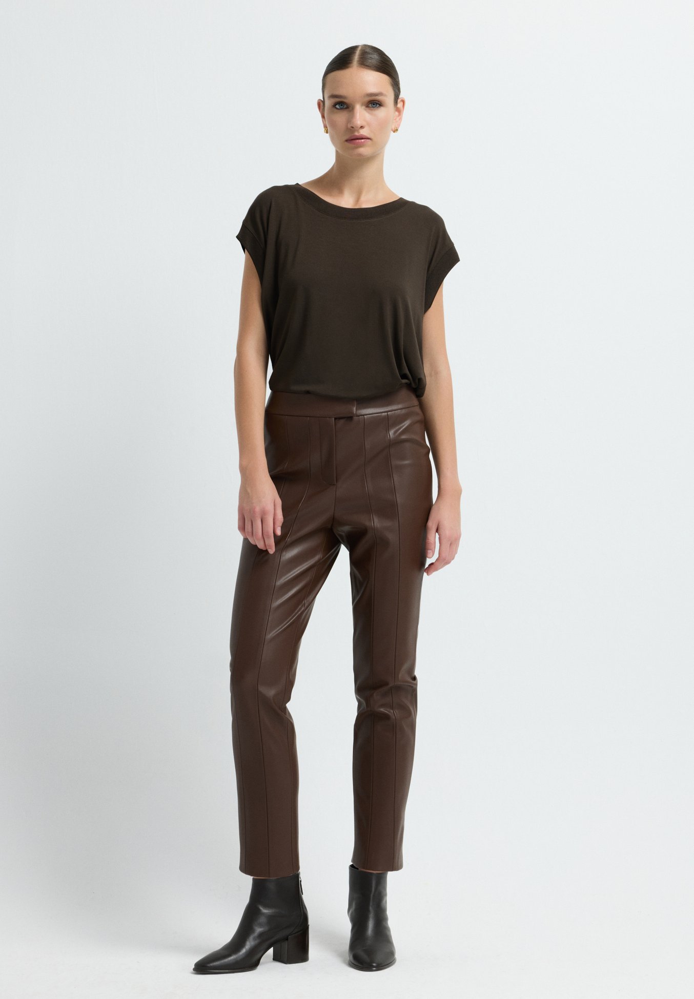 pantaloni finta pelle marroni