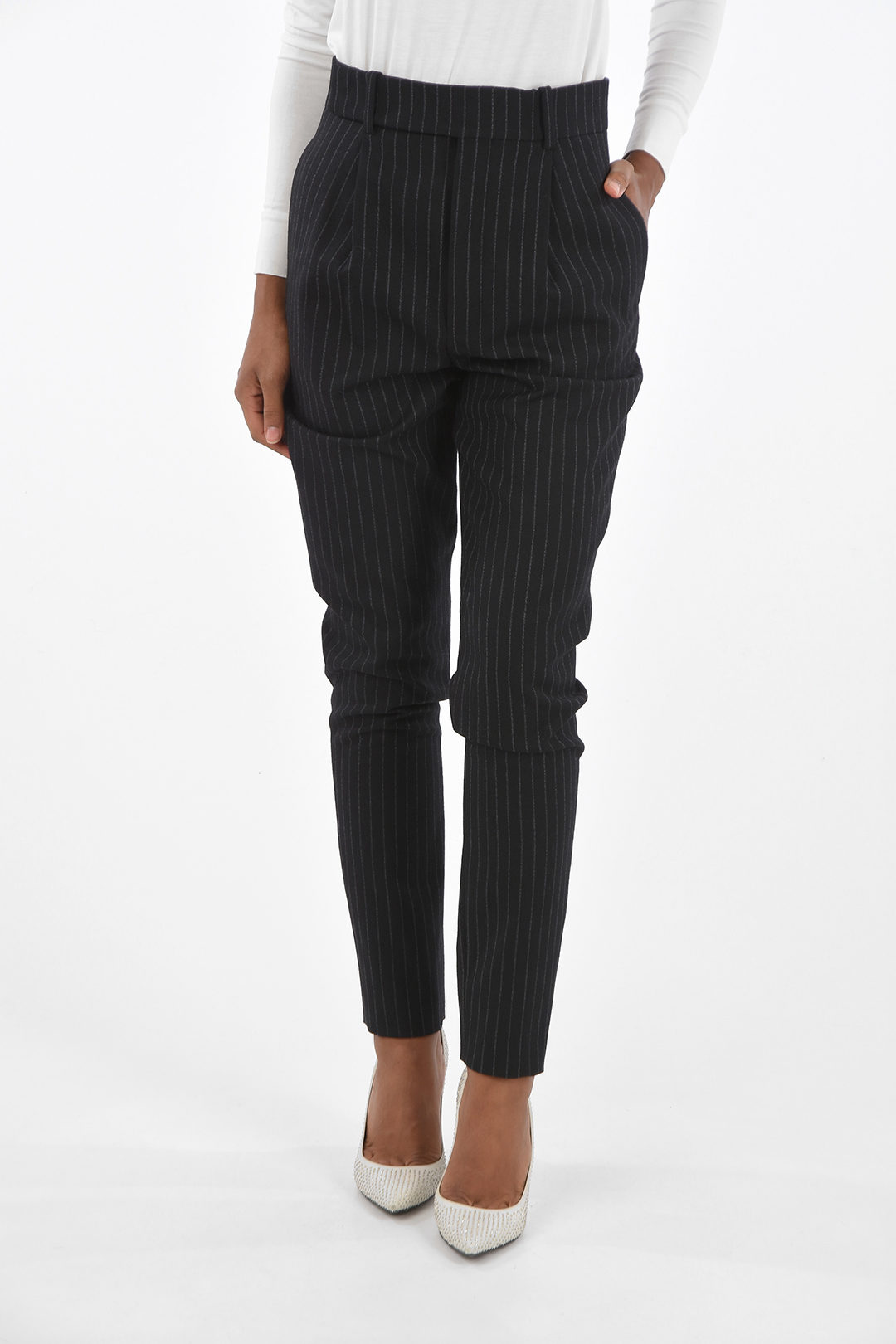 pantaloni gessati vita alta