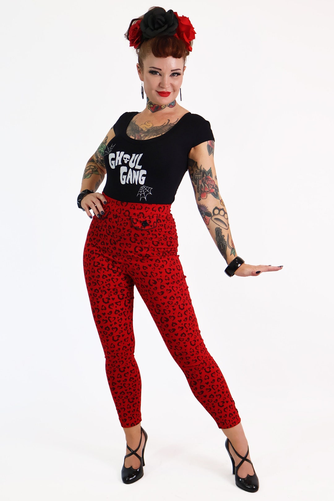 pantaloni leopardati rossi